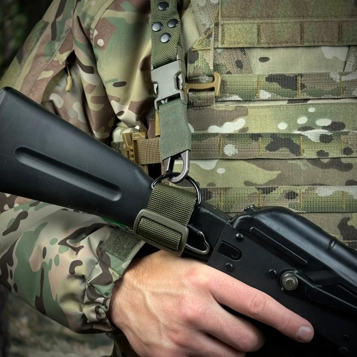 Додаткове кріплення з металічним напівкільцем на звуження прикладу замінить Вам антабку за її відсутності, або якщо вона розташована на краю приклада, що незручно при використанні одноточкових збройових ременів.