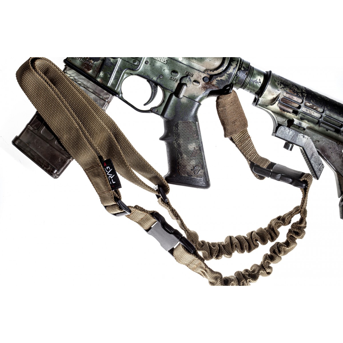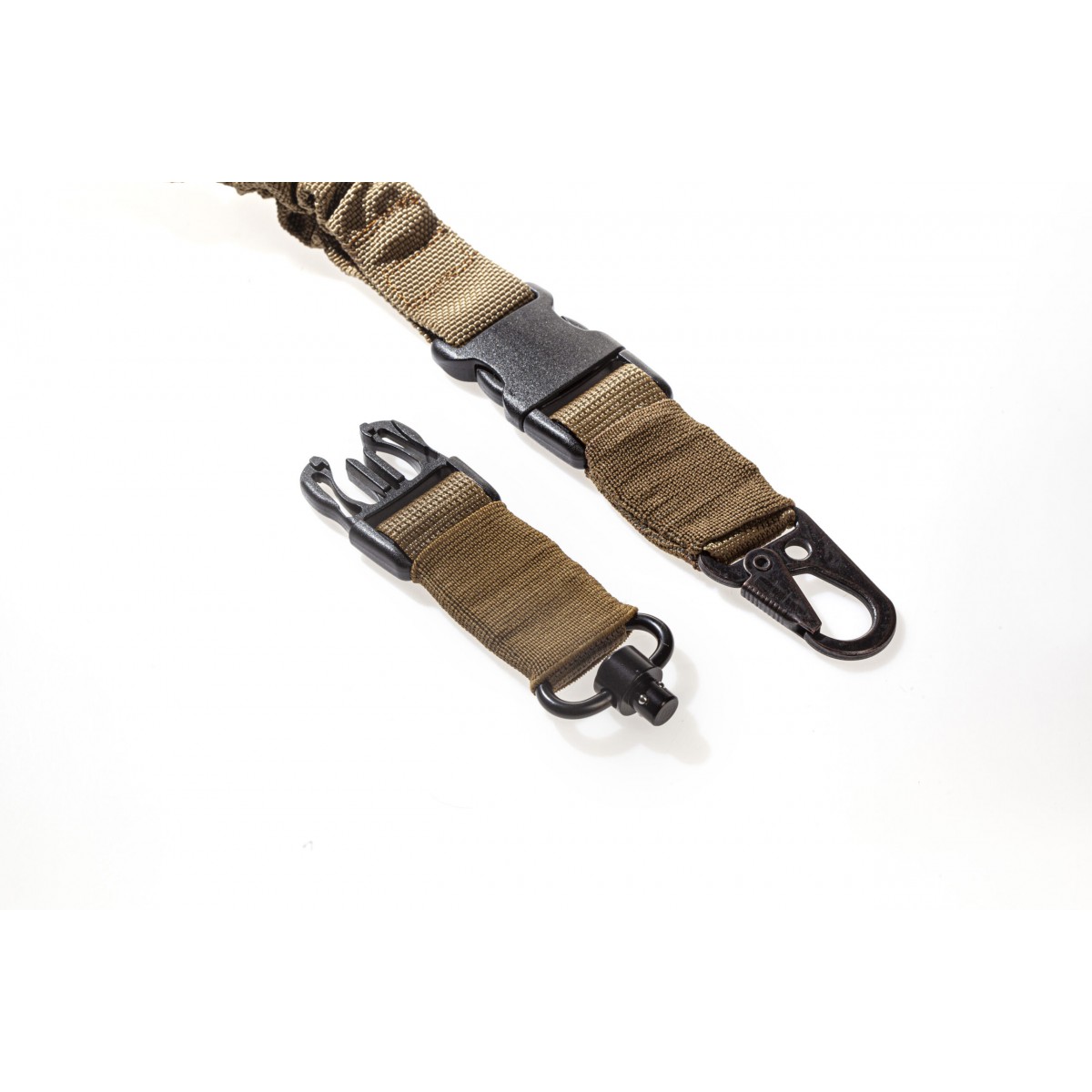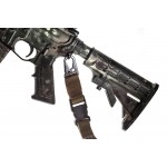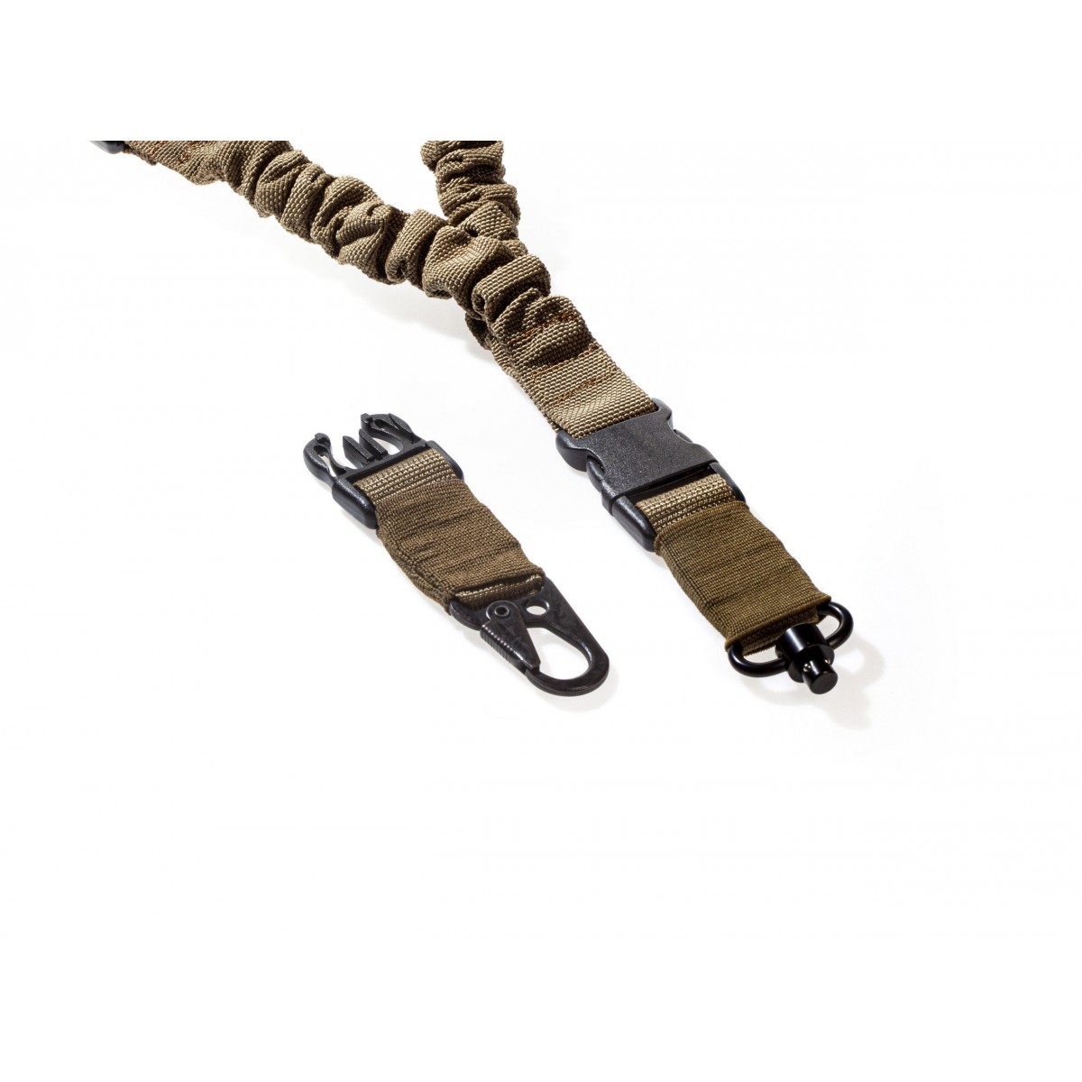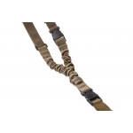 Ремінь еластичний, кріплення зі зброєю відбувається в одній точці. Зафіксувати його можна за допомогою карабіна або швидкозйомної антабки. Еластична конструкція забезпечує максимальну гнучкість при управлінні зброєю: амортизуючі вставки з авіаційної резини збільшують швидкість маніпуляцій та не обмежують рухів, а також гасять коливання зброї під час бігу/ходьби. Цей амортизуючий елемент дозволяє вести стрільбу чи керування зброєю під будь-яким кутом.