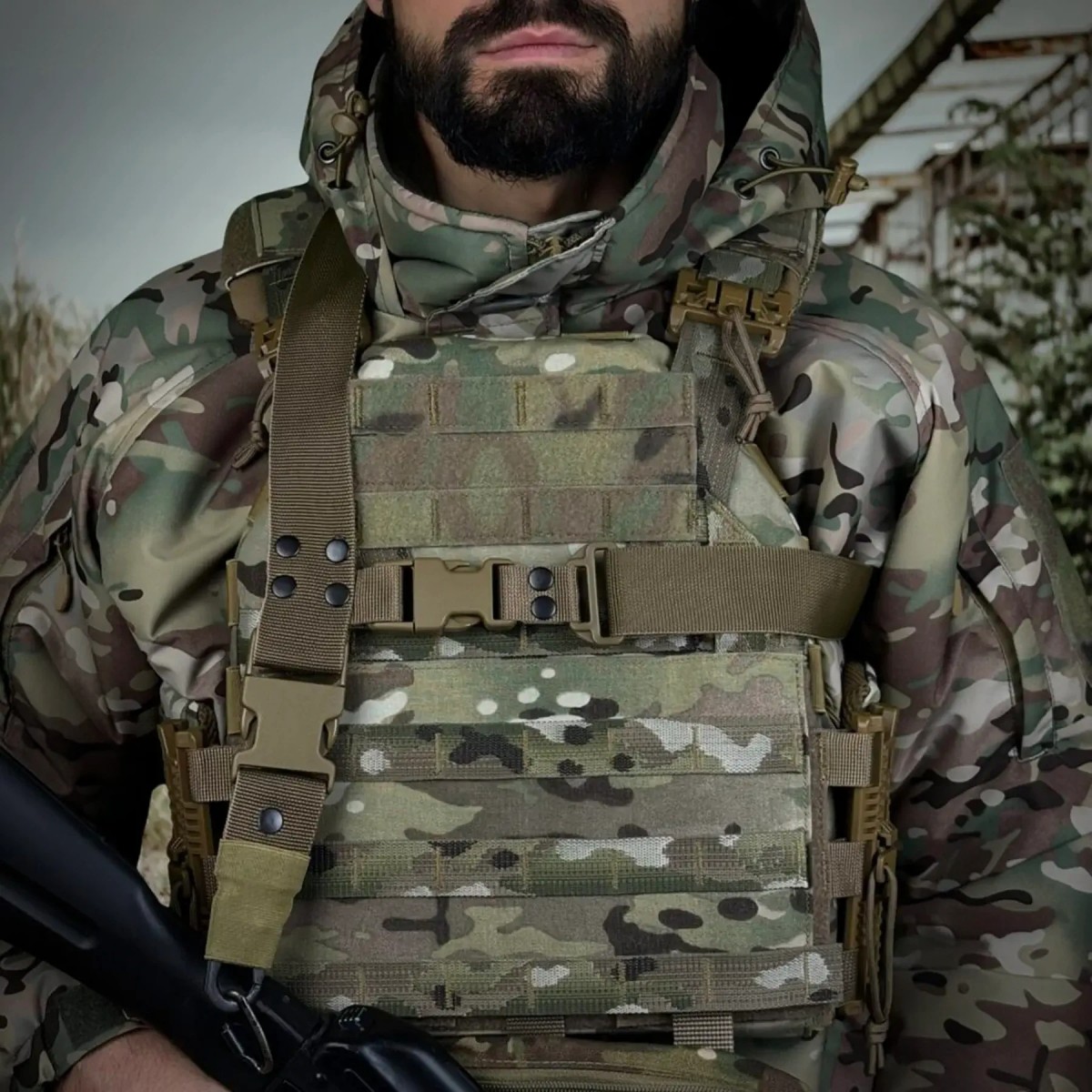 Ремінь має дві точки кріплення, що дозволяє стабільно закріплювати зброю на передній та задній частині стрільця. Забезпечує стійке і безпечне закріплення зброї строповими лямками, особливо для тяжких або довгих зразків.