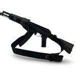 Цей ремінь може вважатись безшумним так як кріплення за передню антабку та за звуження прикладу відбувається стропами за допомогою двощільових пряжок. Для швидкого корегування розміру ми додали петлю регулювання довжини яка знаходиться під лівою рукою. Триточковий ремінь також можна використовувати для носіння зброї у стилі біатлону.