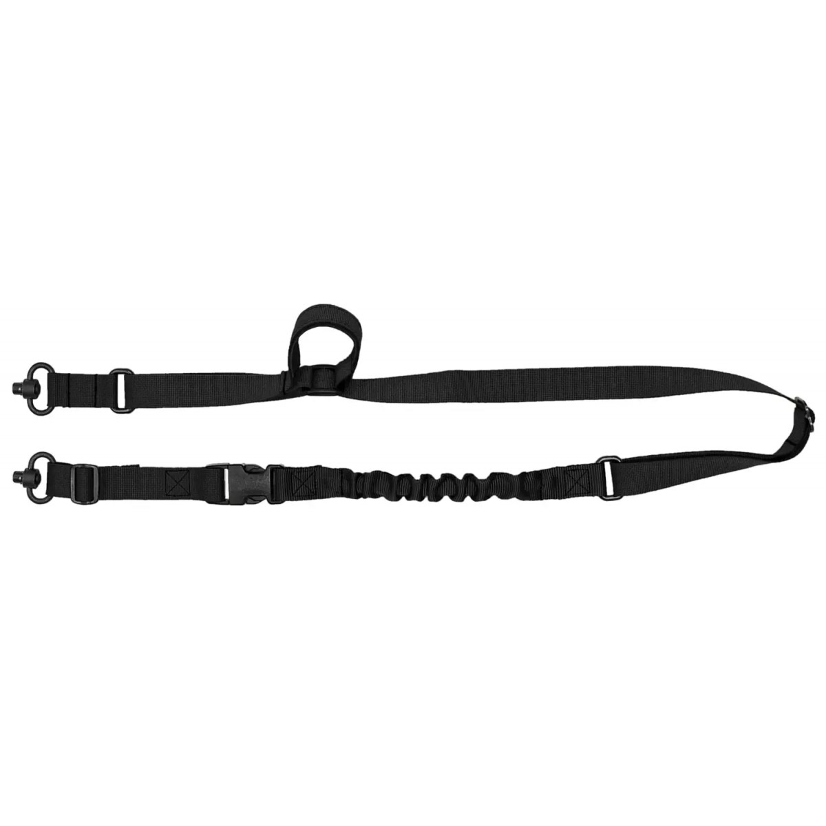 З двоточковим збройовим ременем Quick Adjust Tactical Sling переведення зброї з положення на грудях стволом вниз у бойову готовність відбувається за секунду, як одним рухом - захоплюємо зачіп і направляємо зброю в сторону мішені.