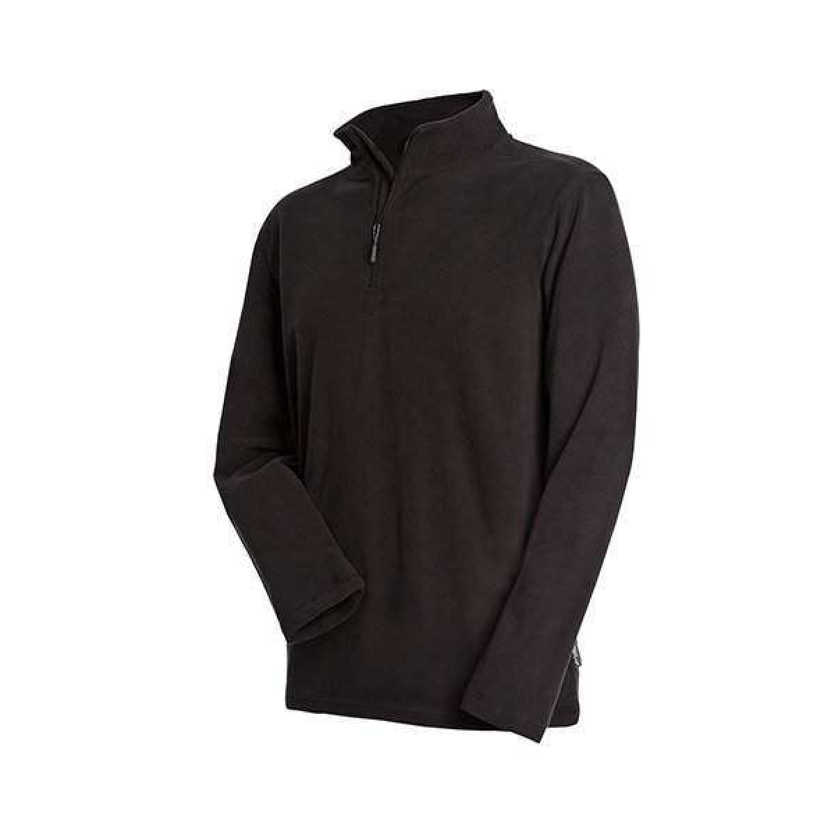 Дихаюча тканина, начіс з одного боку, обробка горловини поліестер-твіл, обтачке по спинці, половинна застібка-блискавка того ж кольору з внутрішньою планкою, комір-стійка, регульований край, бічні шви.
