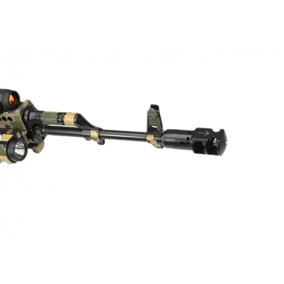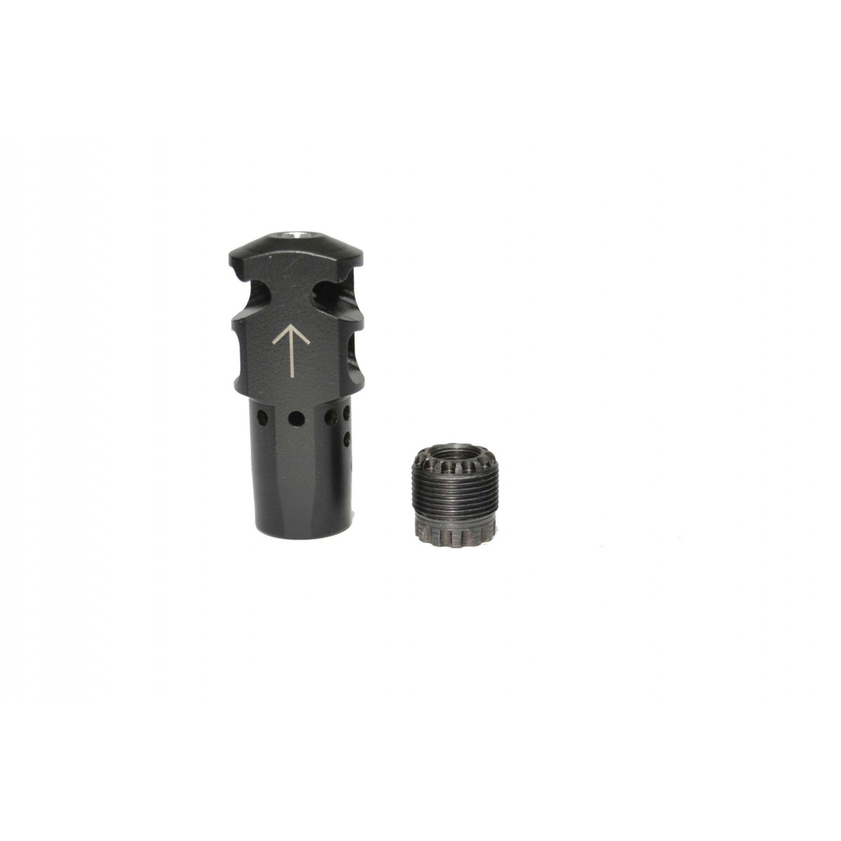Даний ДТК відмінно прибирає віддачу завдяки двом великим зябер і чудово стабілізує ствол зброї за допомогою отворів реактивної тяги. Він допоможе Вам економити патрони і не дасть втратити мета уваги. Він дає відчуття віддачі, що ви стріляєте з калібру 5.45 або.223 Rem.