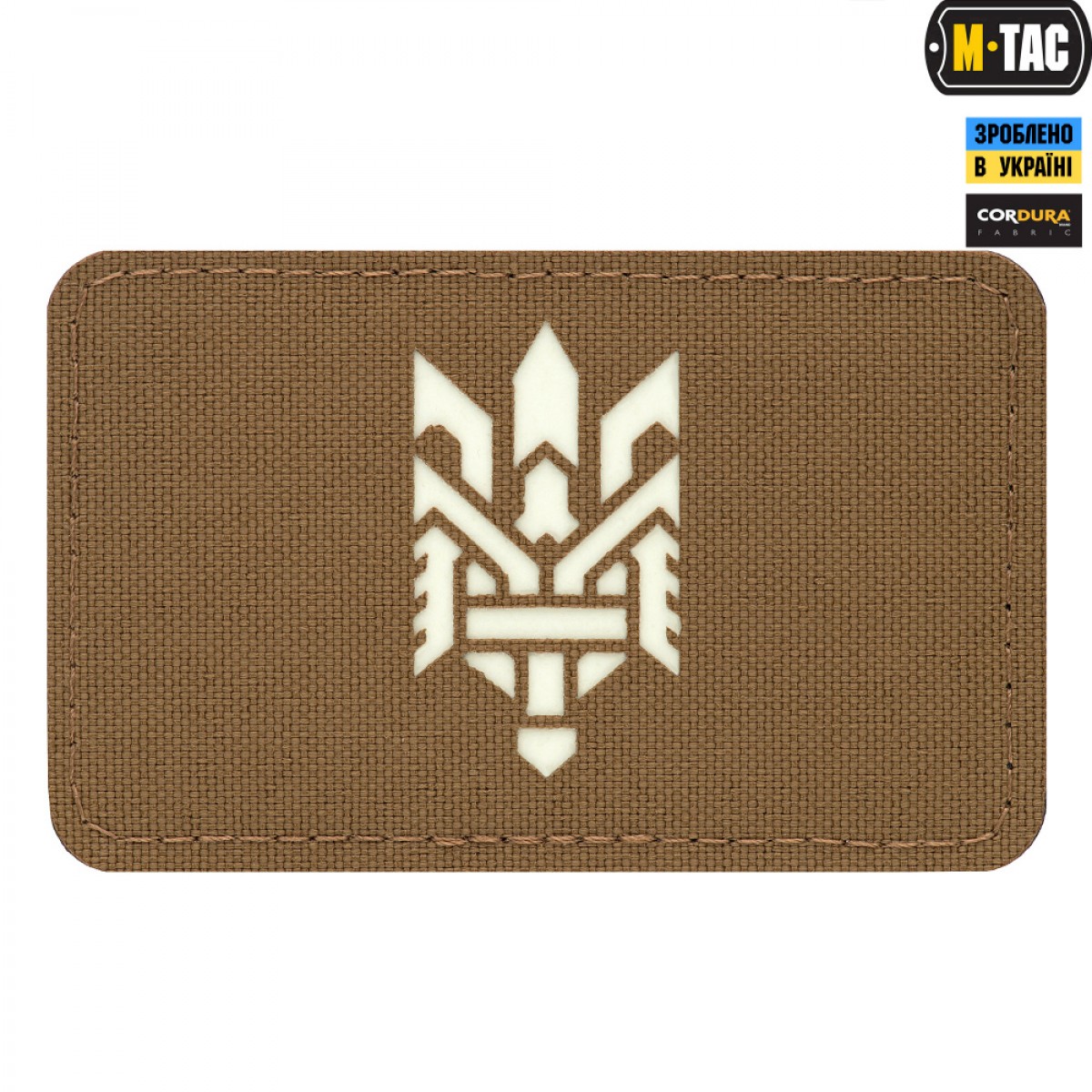 Опис M-Tac нашивка Тризуб (стилізація) Laser Cut горизонтальна Coyote/светонакопичувач