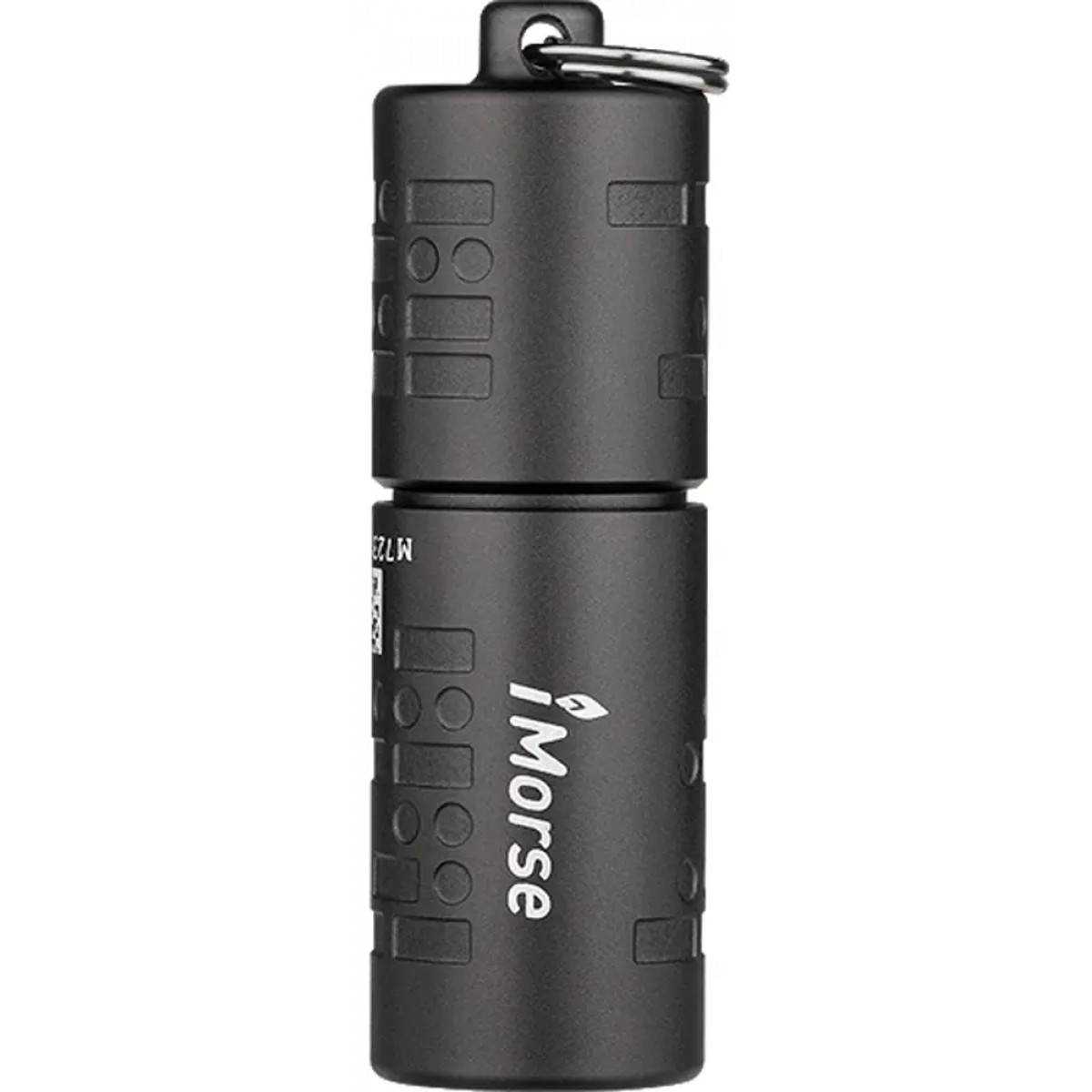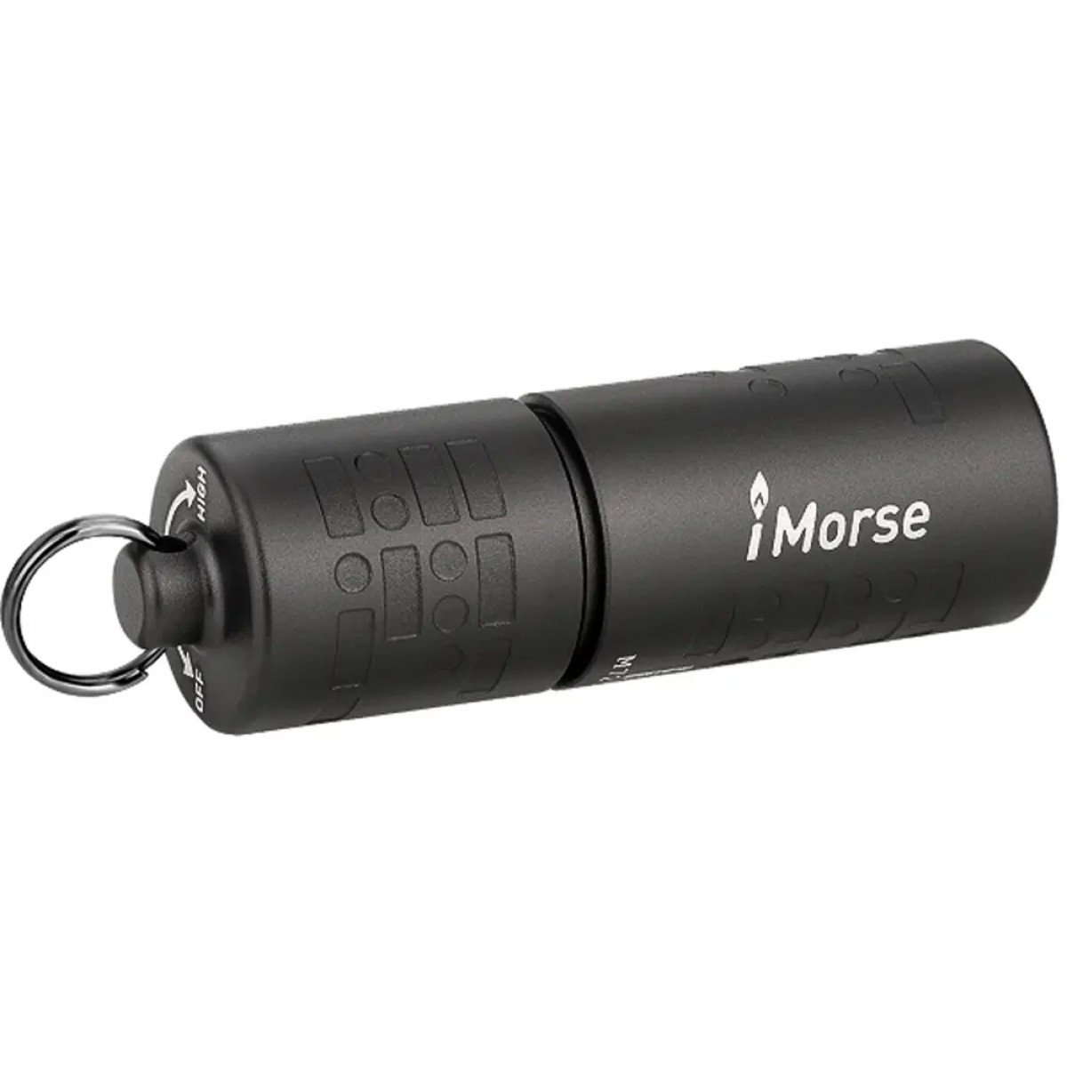 Ліхтар IMorse – мініатюрна новинка від Olight. Ліхтар оснащений високопродуктивним світлодіодом, який у парі з TIR-оптикою створює добре збалансований світловий промінь. Відмінна риса малюка - алюмінієвий корпус з накаткою у вигляді абетки Морзе, в якій зашифровано послання від майстрів Olight. У моделі IMorse представлено 2 режими світла: на 180 люмен з максимальною дальністю світіння 48 метрів і тривалістю роботи до 23 хвилин, а також на 5 люмен, з можливістю роботи до 12 годин. Як елемент живлення використовується літій-іонний акумулятор ємністю 130 мАг, а заряджається через шнур USB Type-C, що йде в комплекті. Повна зарядка акумулятора виконується протягом 100 хвилин. У торцевій частині ліхтаря є металеве кільце для закріплення на ключах або інших аксесуарах повсякденного використання.