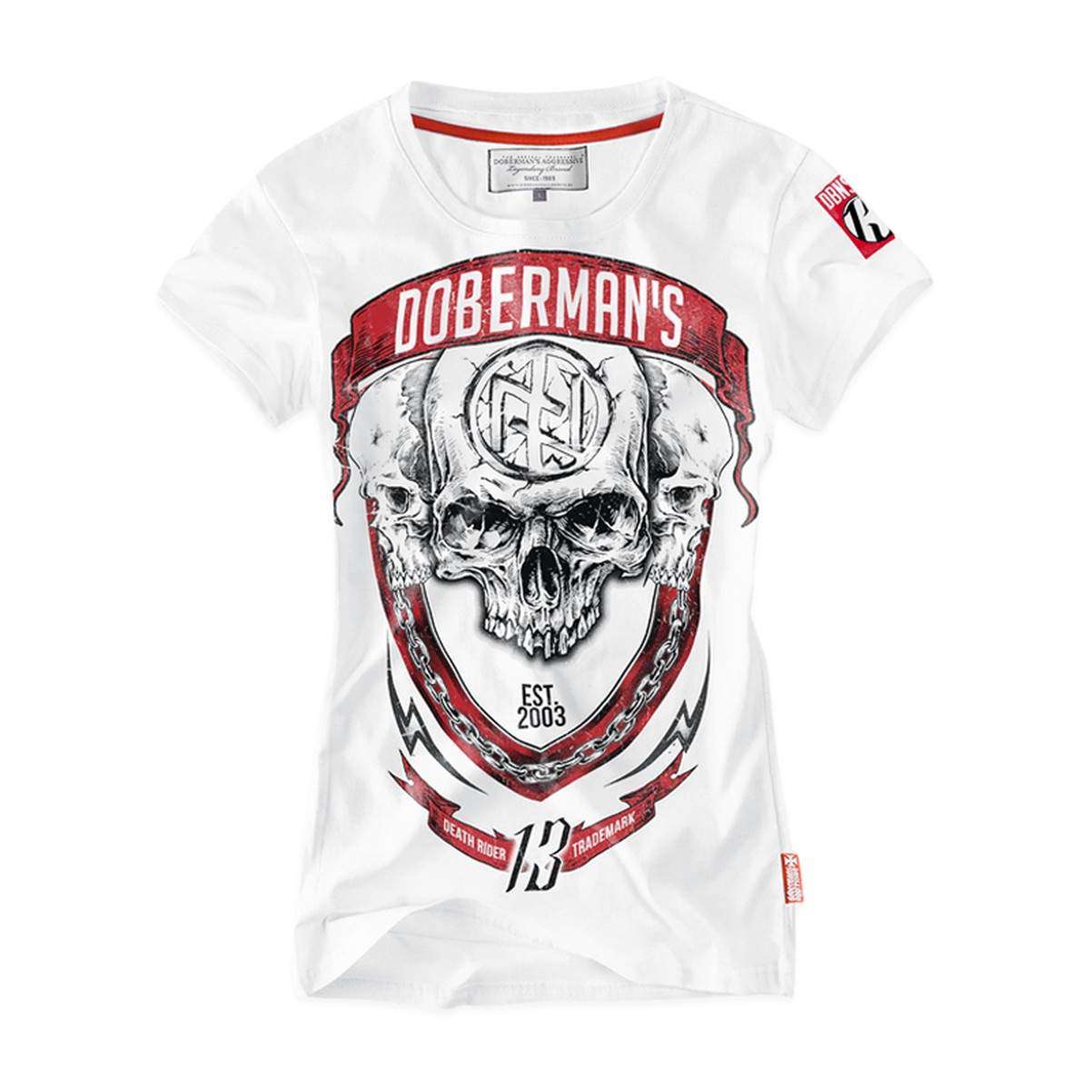 Дизайн одягу Dobermans Aggressive - ось що є відмінною рисою бренду. Уважність до дрібниць, оздоблення, принти і вишивки - все це робить одяг Dobermans Aggressive не схожою на іншу. Практично весь асортимент Dobermans Aggressive - куртки, сорочки, штани, лонгсливы, футболки, толстовки виготовляються з 100% бавовни, що забезпечує максимум комфорту при носінні і експлуатації. Ключовою особливістю бренду є те, що вся продукція виготовляється виключно в країнах Євросоюзу. Вся представлена продукція в даному розділі є результатом творчої діяльності дизайнерів бренду Dobermans Aggressive. Всі зображення, нанесені на вироби не несуть політичної або ідеологічної підоснови. Символіка не входить в список забороненої.Основні характеристики Футболка жіноча Dobermans TSD167WT