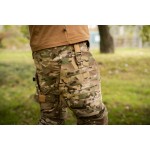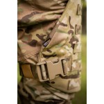 Вдосконалений модуль захисту стегон покриває вразливі ділянки – тазостегновий суглоб, кровоносні судини та м’які тканини. Бронепакет із НВМПЕ 1-го класу захисту ефективно захищає цю зону від уламків, осколків та рикошетів. Завдяки формі, яка повторює анатомічні вигини, а також спеціальним кріпленням та еластичним елементам модуль не заважає свободі рухів. Особливості виробу Захист стегон L має такі характеристики: Забезпечує площу захисту 15,56 дм2 та розрахований на обхват стегна 56-61 см. Кріпиться навколо ноги на один широкий (4 см) горизонтальний ремінець зі звичайним фастексом. До РПС чи ременя – на вузький (2,5 см) вертикальний із поворотним фастексом. Для цього на його кінці вміщена петля висотою 5 см з велкро. Запасу обох ремінців вистачає на зручне налаштування за довжиною. А завдяки еластичним муфтам можна зафіксувати їхні вільні кінці, щоб вони не бовталися. Водночас резинка, пришита до горизонтальної стропи, дає змогу виробу адаптуватися до зміни об’єму стегна при скороченні м’язів. Поворотний фастекс не лише дозволяє швидко відстібнути модуль від ременя, а й обертається разом зі стропою під час ходьби, бігу, присідання тощо. Така рухливість запобігає її перекручуванню та деформації, а також мінімізує тиск на штани і їхнє відтягування під час активності. На зовнішній поверхні виробу нашиті п’ять коротких рядів чарунок MOLLE, на які можна навісити два-три підсумки. Кишеня, у яку встановлений протиуламковий пакет, застібається клапаном із липучкою. Це дає змогу безперешкодно дістати його, щоб випрати кишеню. Захист стегон постачається комплектом із двох текстильних чохлів разом із бронепакетами. Технічні характеристики Матеріал: Nylon 500D або Cordura 500D, поліамідна стропа. Липучка: Velcro. Фурнітура: фастекс 5 см, поворотний фастекс 3 см (2М). Розмір: 33×33 см. Обхват стегна: 56-61 см. Клас захисту: 1-й. Площа захисту (пара): 15,56 дм2. Вага: 1260 г.Відгуки про Захист стегон із поворотним кріпленням L (Мультикам)