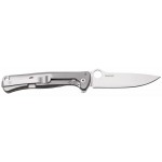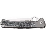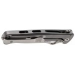 Монолітне руків’я з титану, виконане з єдиного шматка металу за технологією SOLID, має вставку з вуглецевого волокна, що додає контрасту й відчуття високотехнологічності. Усе виглядає бездоганно: кожен вигин, кожна грань підкреслює точність і стиль. На кінці розміщена кліпса та отвір під темляк чи стильний ремінець.