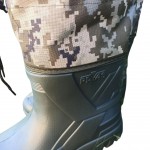 Нижня частина виконана з водонепроникного гумового матеріалу. Верх — тканинна халява в розфарбуванні «хакі-піксель» із металевими люверсами та шнуром-стяжкою. Усередині передбачений утеплювальний вкладиш, який працює як додатковий теплоізоляційний шар і підвищує комфорт у холодну погоду.