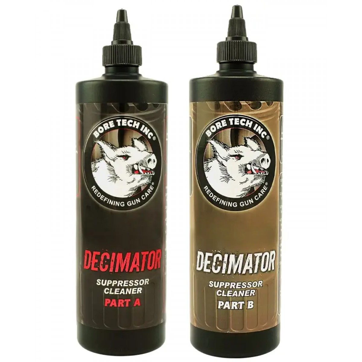 Система для чищення Decimator від Bore Tech призначена для ефективного, простого і безпечного чищення та обслуговування дульних пристроїв. Decimator від Bore Tech - це єдиний у галузі очищувач, спеціально розроблений для безпечного та ефективного видалення сильного нагару, що утворюється всередині глушників і ДГК, встановлених на зброю під набій кільцевого запалення і центрального бою.