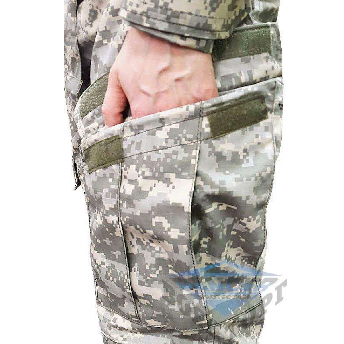 Два бічних кишені, два задніх(закриваються на гудзики), а також два зручних для скидання магазину стегнах кишені, мають утяжку на резинці, два гомілковостопних кишені ідеально пристосованих для носіння особистої аптечки, доп. боєприпасів і т. д.