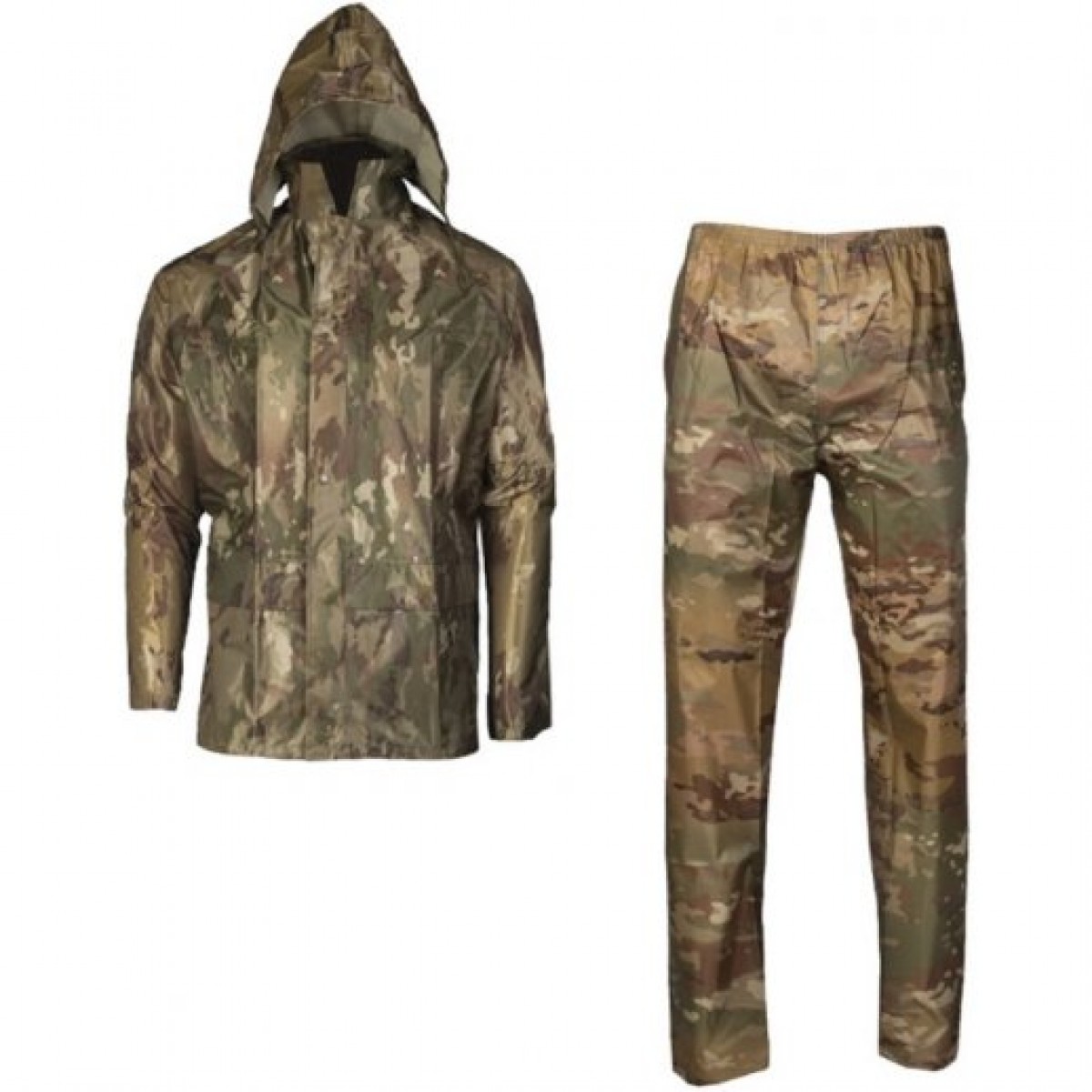 Дуже міцний і легкий костюм для захисту від негоди. При необхідності костюм складається в чохол невеликого розміру (в комплекті).Курточка застібається спереду застібкою-блискавкою. Капюшон може бути складний в комір. Дві бічні кишені. Пояс штанів на шнурку і гумці. Виготовлений з вулканізованого поліестеру з покриттям з ПВХ. Матеріал повністю водонепроникний і надійно захищає від ветра.Предусмотрени бічні отвори для легкого доступу до брючним кишенях. Регульована ширина штанин. Костюм не прилипає до одягу і не обмежує рух.