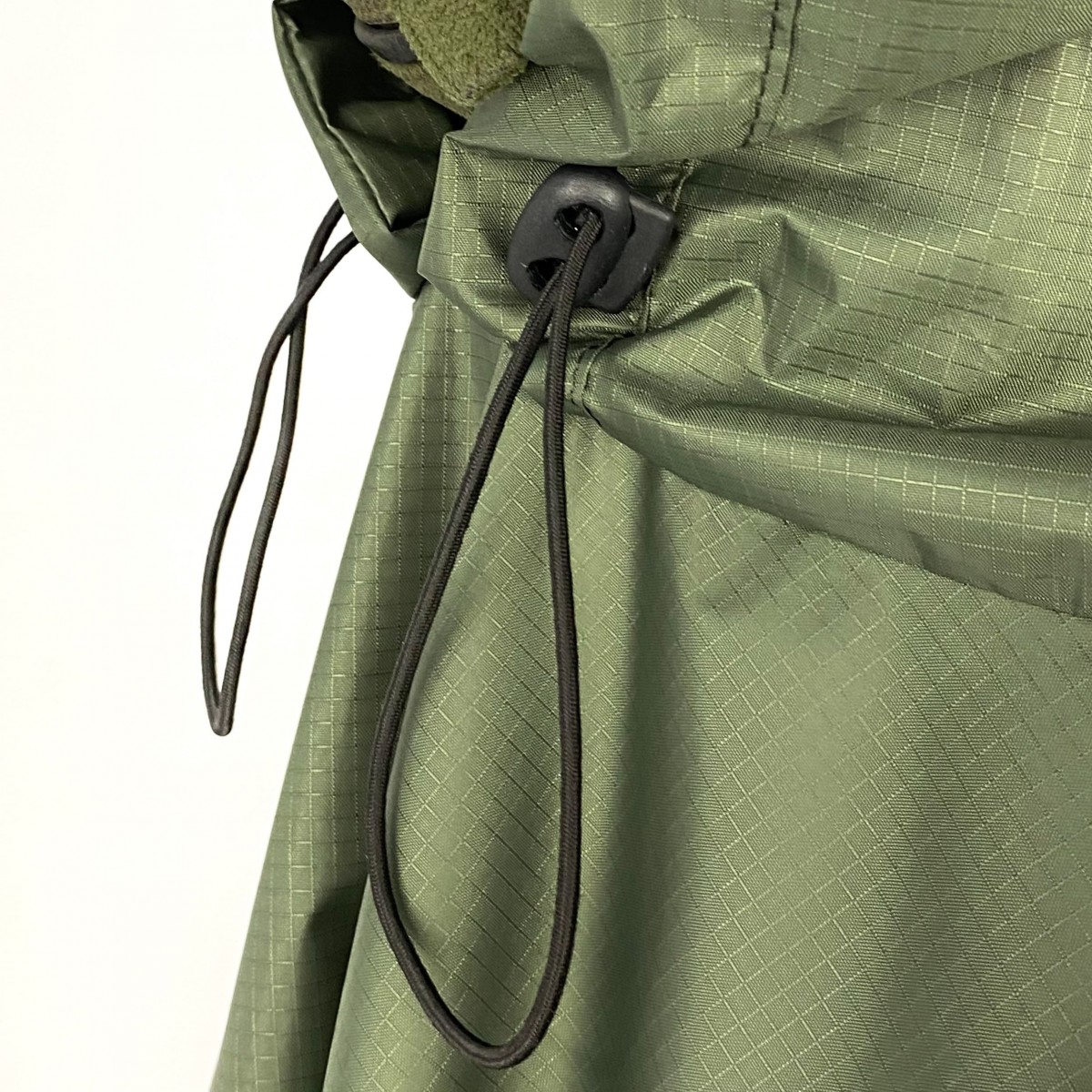 Представлений у нашому інтернет-магазині плащ-намет має широкий глибокий капюшон, що повністю покриває голову із шоломом. Для більш комфортного використання на капюшоні передбачені прогумовані джгути із фіксаторами.