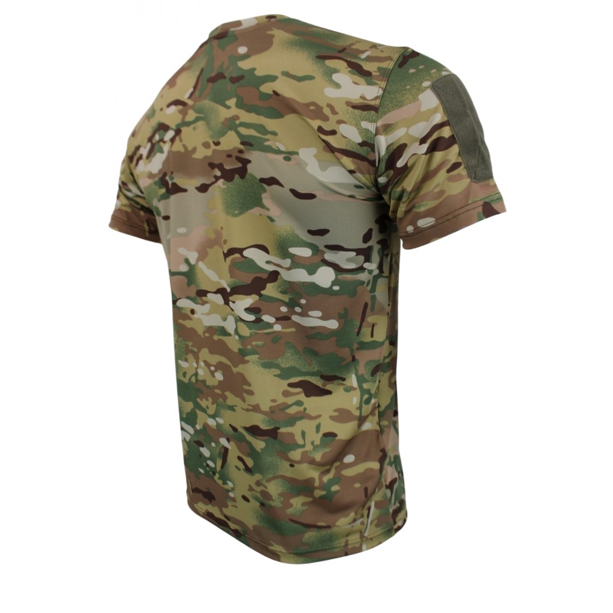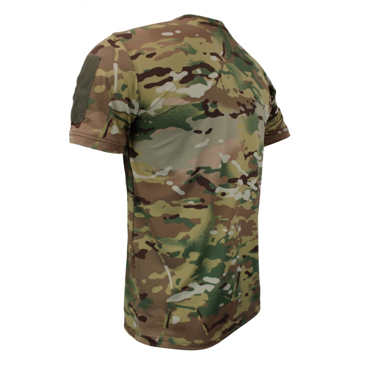 Футболка Cross з Velcro Pancer у забарвленні Мультикам виготовлена з технологічної тканини CoolMax, що забезпечує вентиляцію та швидке відведення вологи. Конструкція з липучками Velcro на рукавах дозволяє розміщувати шеврони та патчі. Військові відзначають зручну посадку та комфорт під час носіння під бронежилетом або розвантаженням.