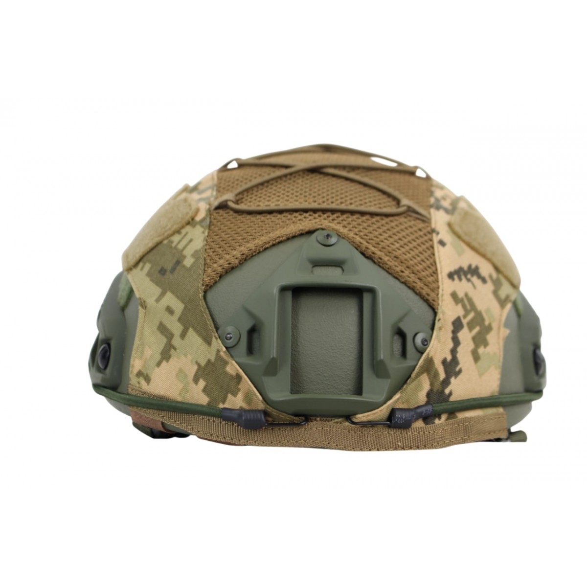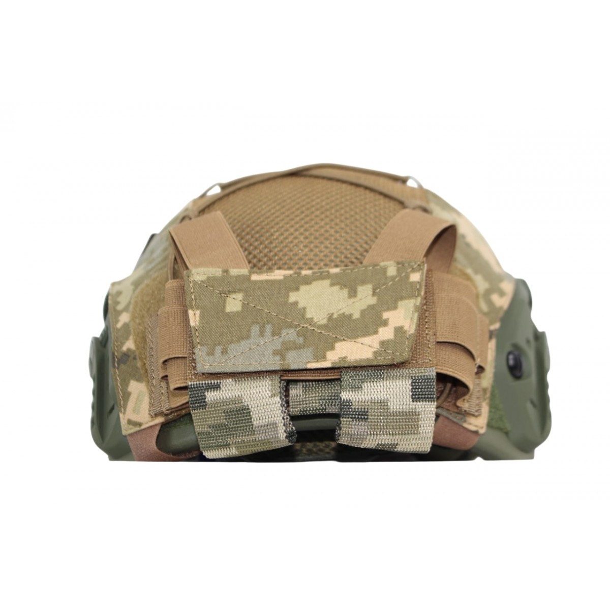 Дана модель кавера застосовується для маскування на місцевості змінного рельєфу та захисту від зовнішніх впливів. Має резинку та пластиковий фіксатор, що дає можливість добре його закріпити на шоломі.