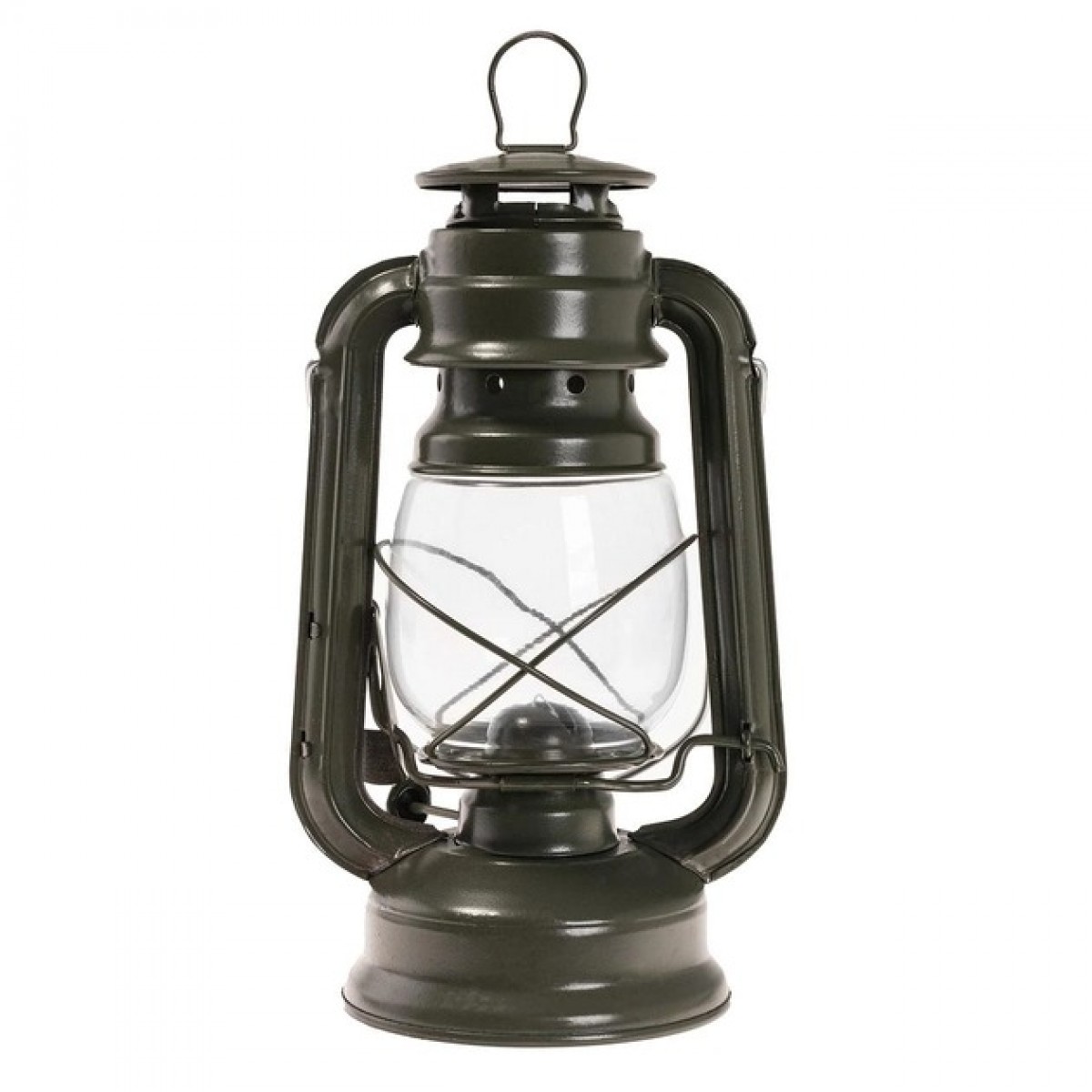 Класична керосинова лампа з регульованим полум'ям. За зразком ліхтарів армії США. Виготовлений з корозійностійкої оцинкованої сталі. Джерелом світла є фітиль, поміщений всередину скляного абажуру. Абажур ефективно захищає полум'я від несприятливої погоди. У верхній частині є ручка для перенесення та ручка, що дає змогу підвішувати світильник.