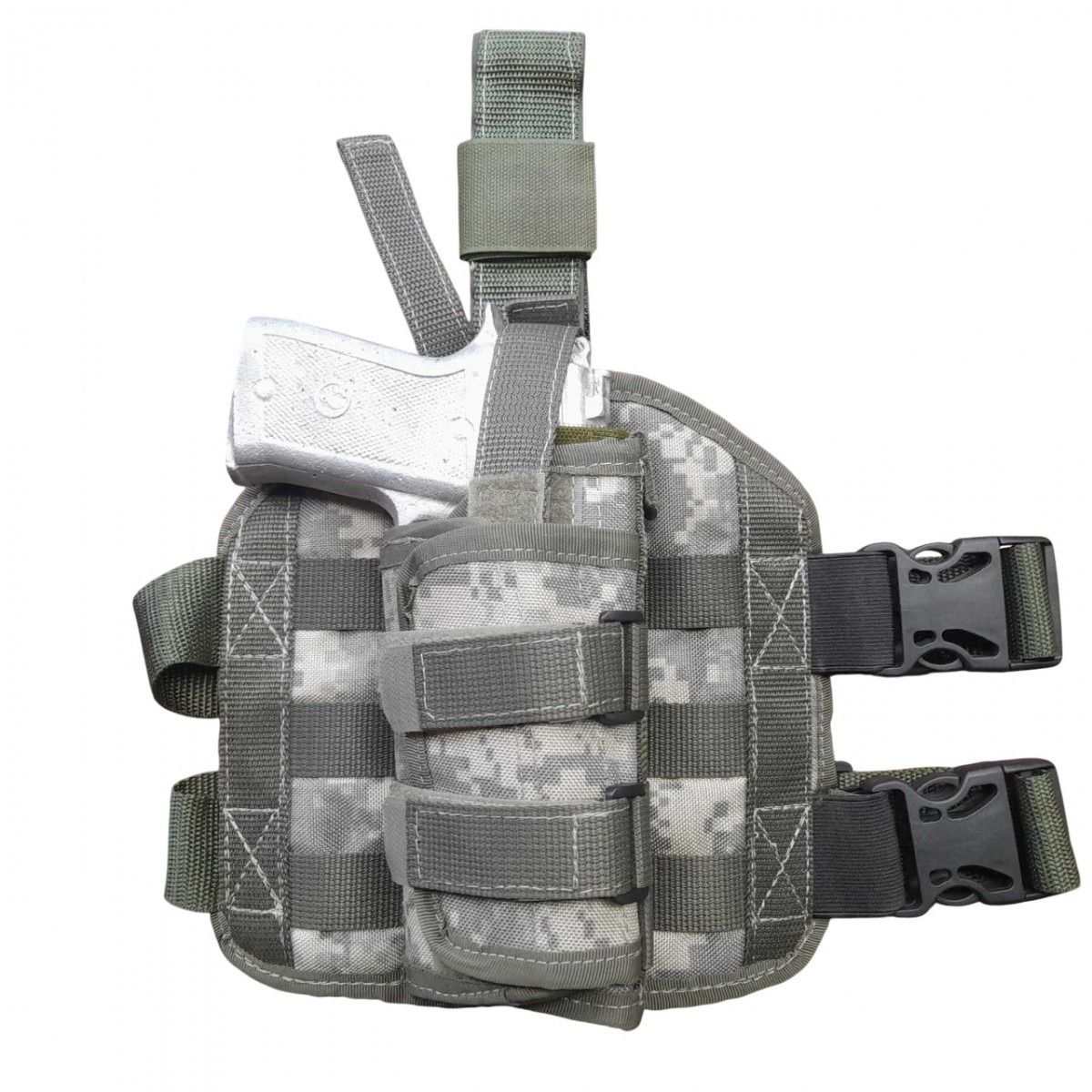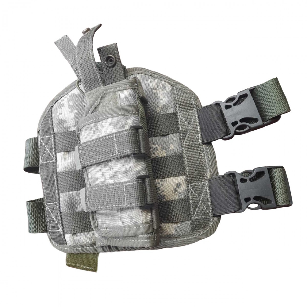 Універсальна кобура-платформа на системі MOLLE у забарвленні ACU піксель виготовлена з міцної тканини Cordura. Конструкція забезпечує швидку фіксацію пістолета та додаткового спорядження. Надійна основа та регульовані кріплення роблять її сумісною з більшістю моделей зброї. Військові відзначають надійність фіксації та зручність доступу до зброї.