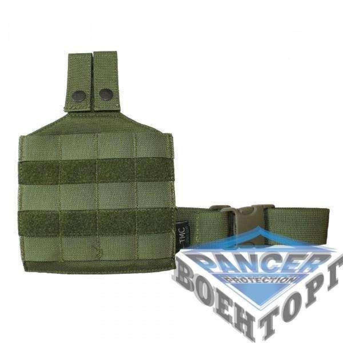 Стегновий платформа від китайського бренду TMC є невеликий і універсальної. Розміри: 4 молле стропи по горизонталі і 3 по вертикалі. Цього достатньо для кріплення двох одинарних або одного подвійного магазинного підсумки для гвинтівкових магазинів. Верхнє кріплення реалізовано для пояса або молле строп. Нижнє - класичний регульований ремінь. Матеріал: Нейлон Колір: Olive Drab
