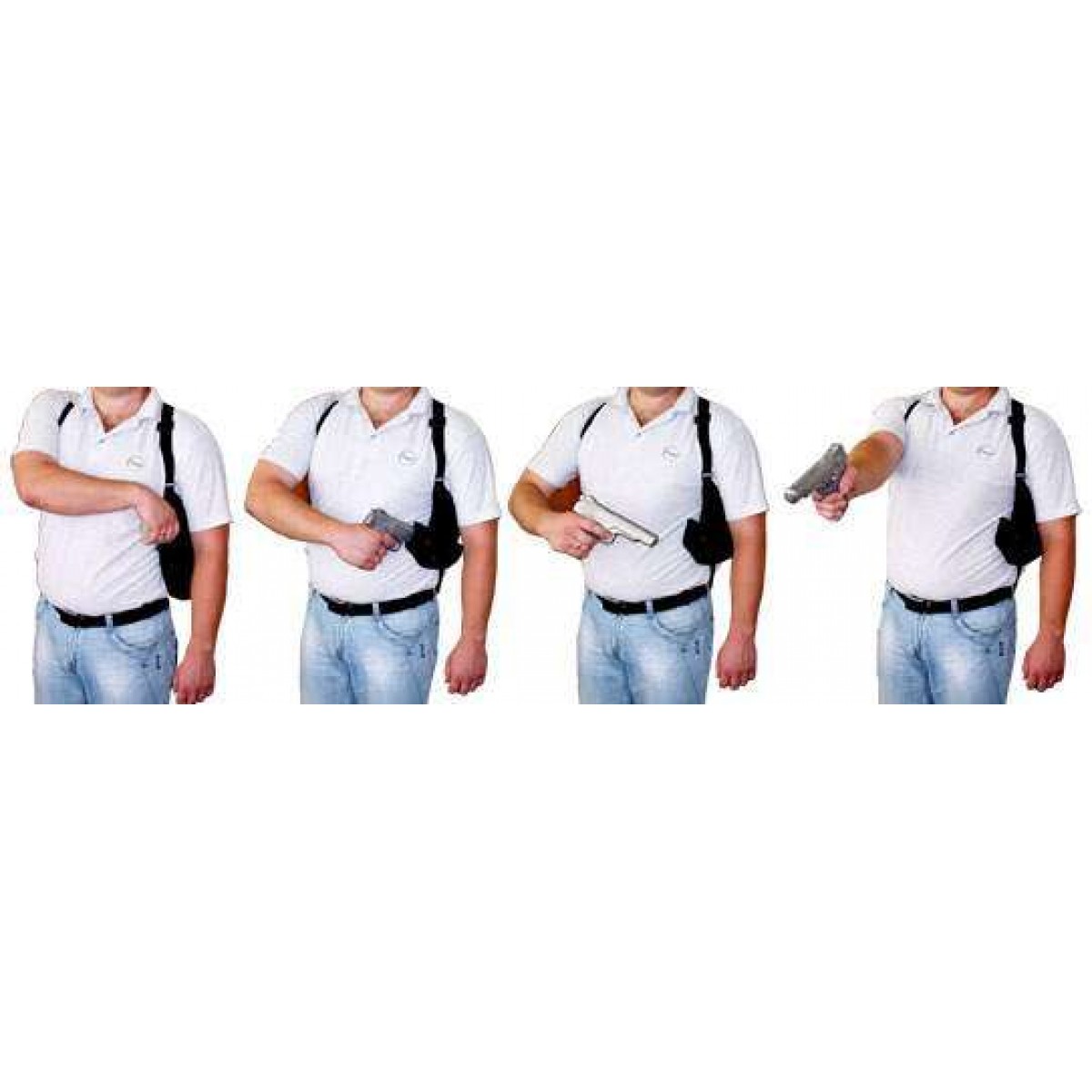 Використовується для довгоствольних моделей пістолетів Кольт 1911, АПС, Беретта 92, ТТ, Форт 2103, Форт 14. Така зброя носиться в вертикальному положенні, т. к. горизонтальне положення не забезпечує необхідної скритності. При цьому витяг пістолета здійснюється рухом знизу-вгору. Це не зовсім зручно, та й часу займає досить багато. Поворотна конструкція даної кобури дозволяє набагато швидше витягти з неї зброю, т. к. рух стає більш коротким і зручним – зліва-направо. Кріплення кобури виконано з ремінною синтетичної стрічки. Додаткове кріплення кобури до пояса надійно фіксує її при швидких переміщеннях і витяганні зброї. Кріплення легко підганяється під індивідуальні розміри людини і забезпечує максимальну щільність прилягання зброї до корпусу.