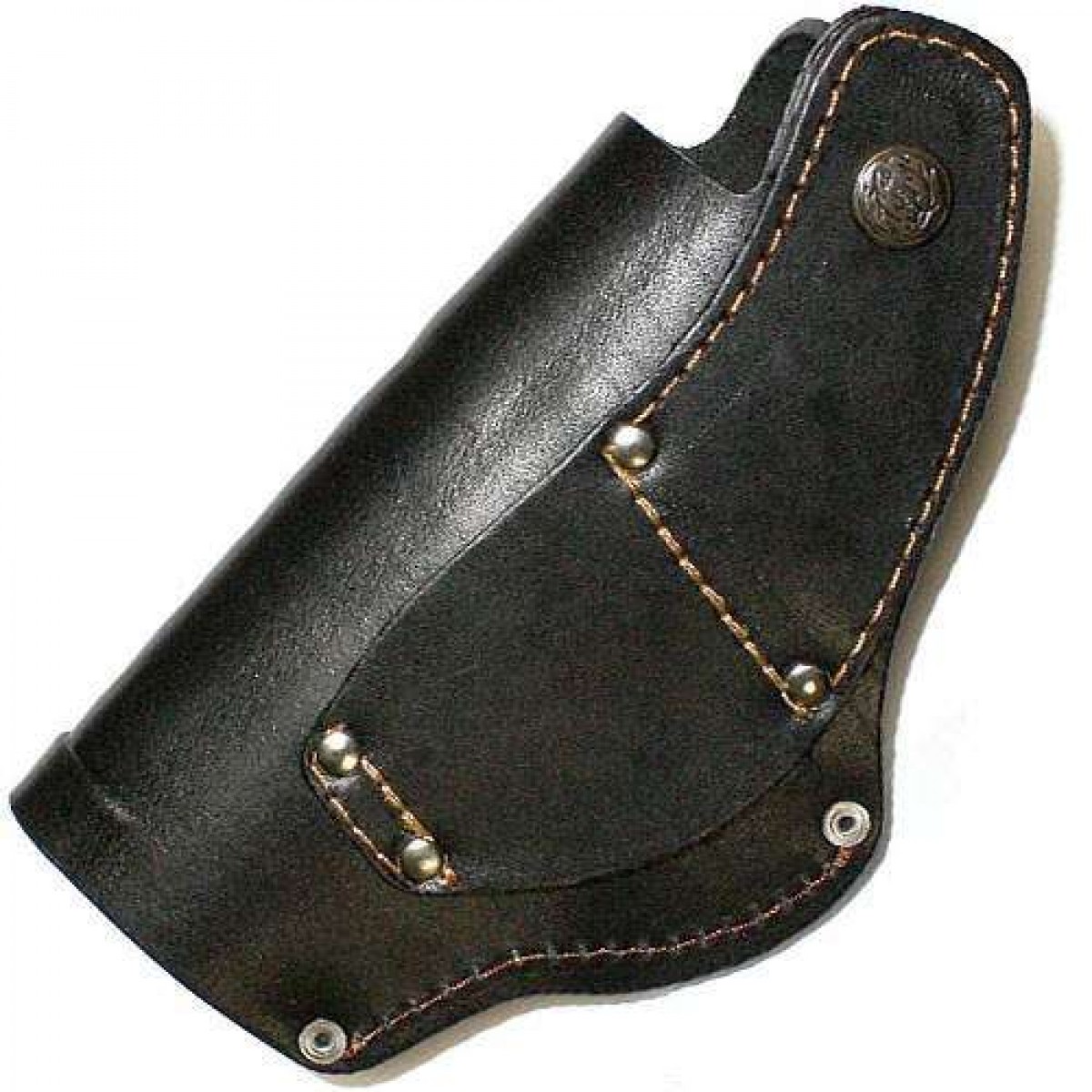 Виготовлена з щільної шкіри товщиною 2.5-3.0 мм. Формована методом гарячого тиснення. На задній стороні кобури нашита шкіряна накладка для носіння на поясному ремені. Максимальна ширина ременя – 50 мм. На лицьовій частині нашита шкіряна накладка на який встановлена металева скоба. Скоба призначена для прихованого носіння кобури (під джинсами, шортами тощо). Відповідна частина кнопки хлястика втоплена і не перешкоджає витяганню пістолета. Нижній шов на кобурі і шви на задній накладці укріплені заклепками.