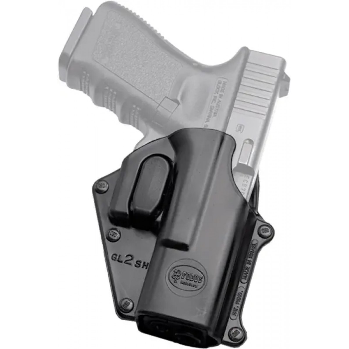 Поясна кобура Fobus GL-2 виготовлена методом лиття з високоміцного полімеру і призначена для носіння пістолетів Glock 17 і Glock 19. Низькопрофільний дизайн сприяє більш прихованого носіння кобури. Конструкція дозволяє швидко і легко витягувати з неї зброю.