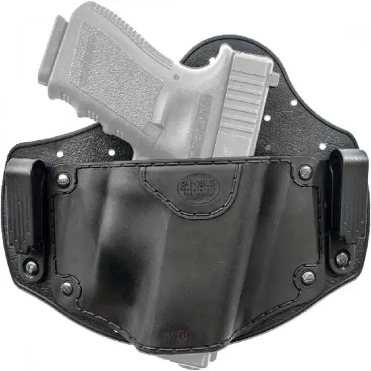 Внутрішньобрючні кобури Fobus Inside the Waistband призначені для прихованого носіння пістолетів різних розмірів, залежно від моделі. Кобури виготовлені методом лиття з високоміцного полімеру. Низькопрофільний дизайн сприяє більш прихованому носінню. Пістолет фіксується в кобурі за допомогою технології пасивного утримання, яка гарантує захист від несанкціонованого вилучення зброї третіми особами. Вентиляційні отвори забезпечують комфортне носіння.