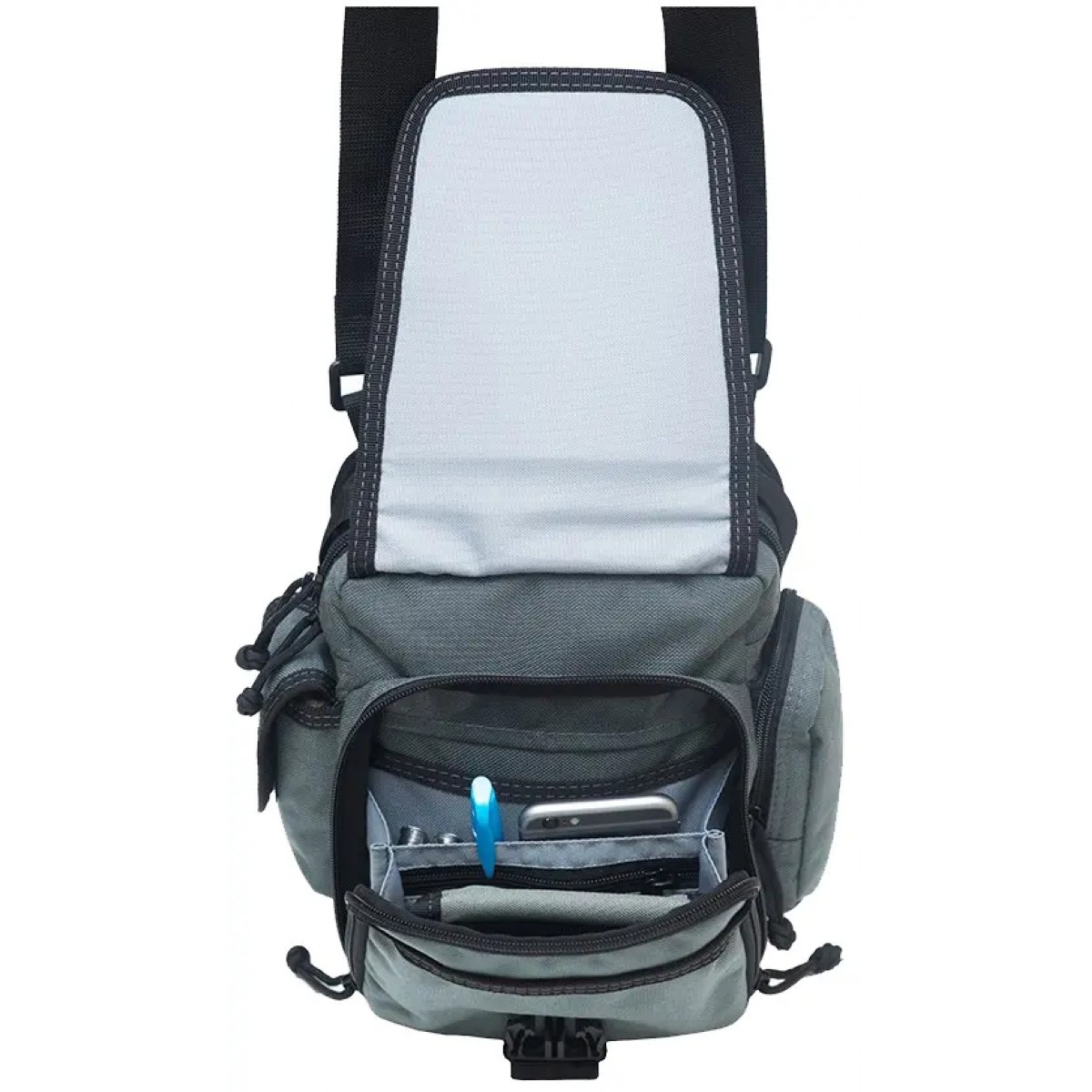 Центральне відділення має всередині кишеню, яка дозволяє носити планшет або гаджет з діагоналлю до 7 дюймів. Також з боків сумки розміщено ще 2 кишені під телефон, ліхтарик або інші невеликі аксесуари. Сумку можна носити як на плечі на шлейці так і за ручку.