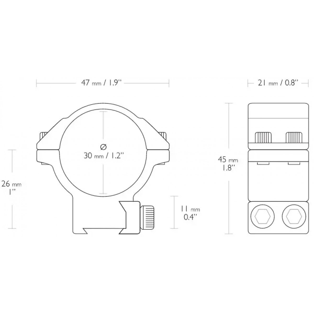 Основні характеристики Кільця Hawke Match Mount. d - 30 мм. Medium. "Ластівчин хвіст"