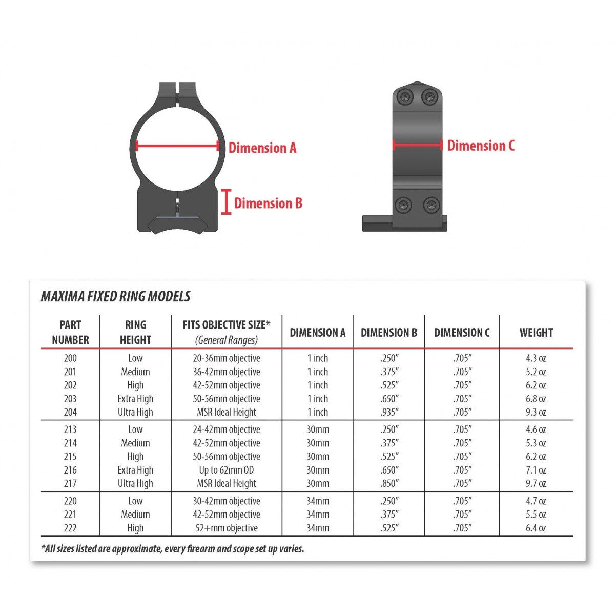 Основні характеристики Кільця Warne Maxima Fixed Rings. d - 30 мм. High. Weaver/Picatinny