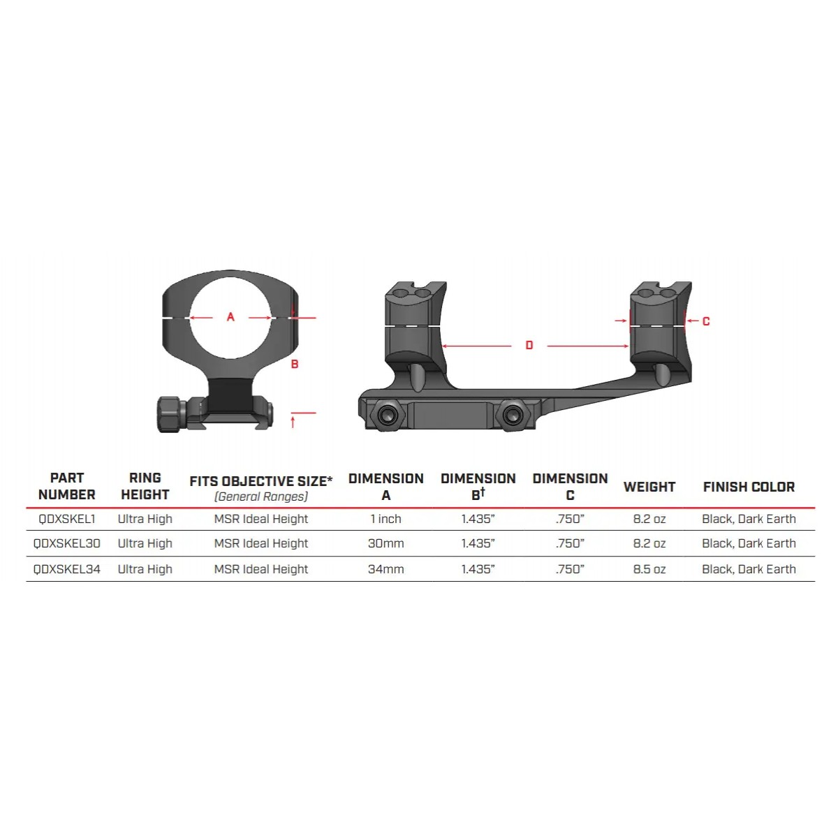 Warne QD X-Skeleton – швидкознімне кріплення для прицілів з діаметром центральної трубки 34 мм та діаметром об’єктиву від 24 до 56 мм.