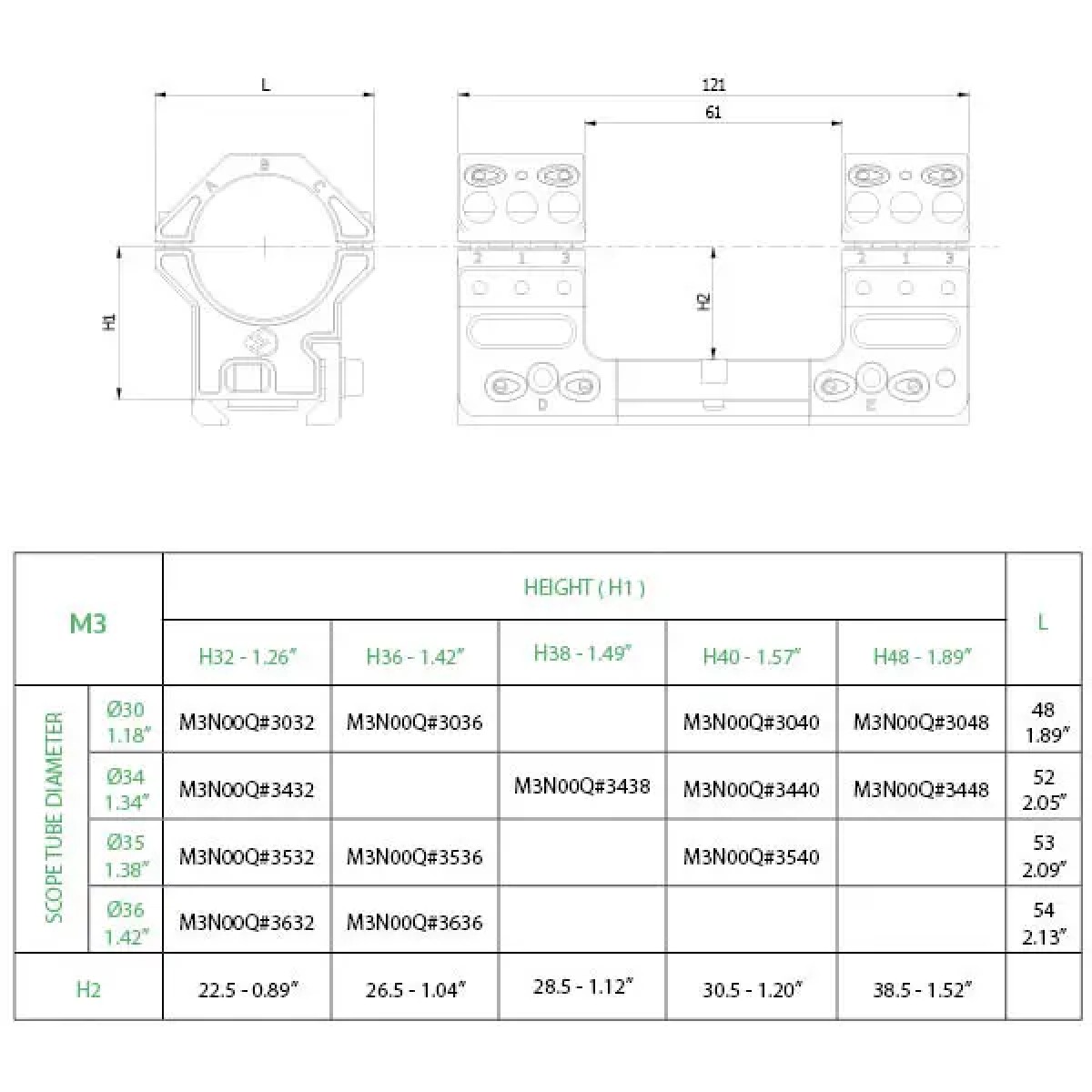 Основні характеристики Моноблок ROME Decumanus M3-QM d - 34 мм. Сплав. Picatinny