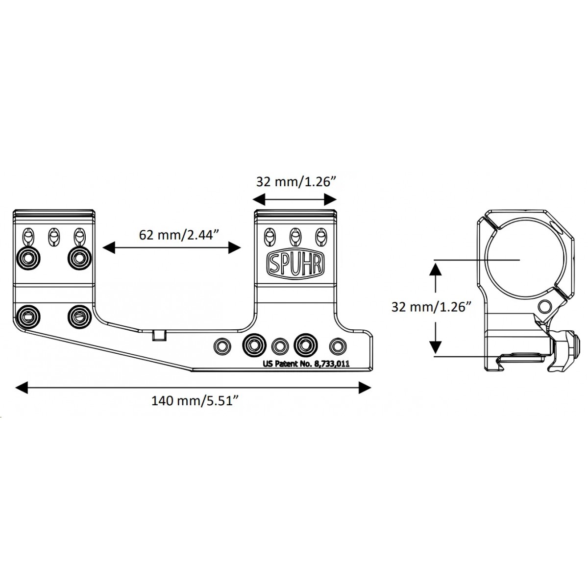 Spuhr SP - тактичне постійне (не швидкознімне) кріплення-моноблок, призначене для встановлення оптичного прицілу на зброю з профілем кріплення Picatinny.