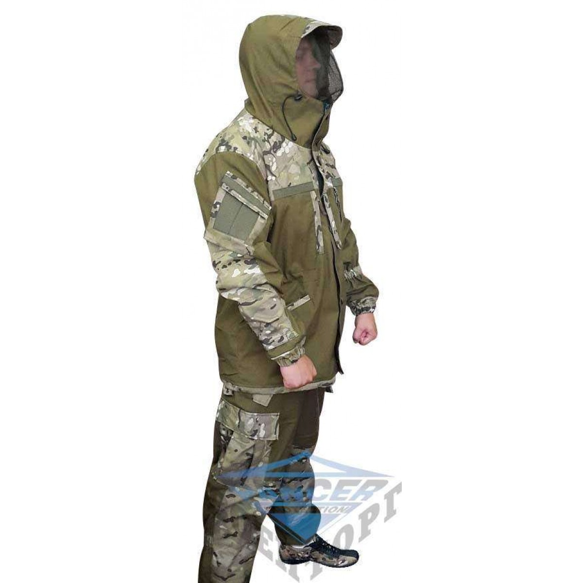 Якщо ви хочете купити камуфляж – костюм Гірка даної моделі підійде вам, т. до. вона складається з частин кольору хакі і камуфляжних вставок мультиків. Костюм оснащений 13 кишенями, які розташовуються на передній частині куртки, всередині неї, на рукавах і штанинах. Різноманітні розміри і кишень, застібки дозволяють носити з собою все необхідне: від дрібних рибальських гачків до зброї. Вздовж всієї куртки і на капюшоні присутній сітка гортекс. Додаткові отвори з блискавками, розташовані під руками, можна відкрити для посилення вентиляції.