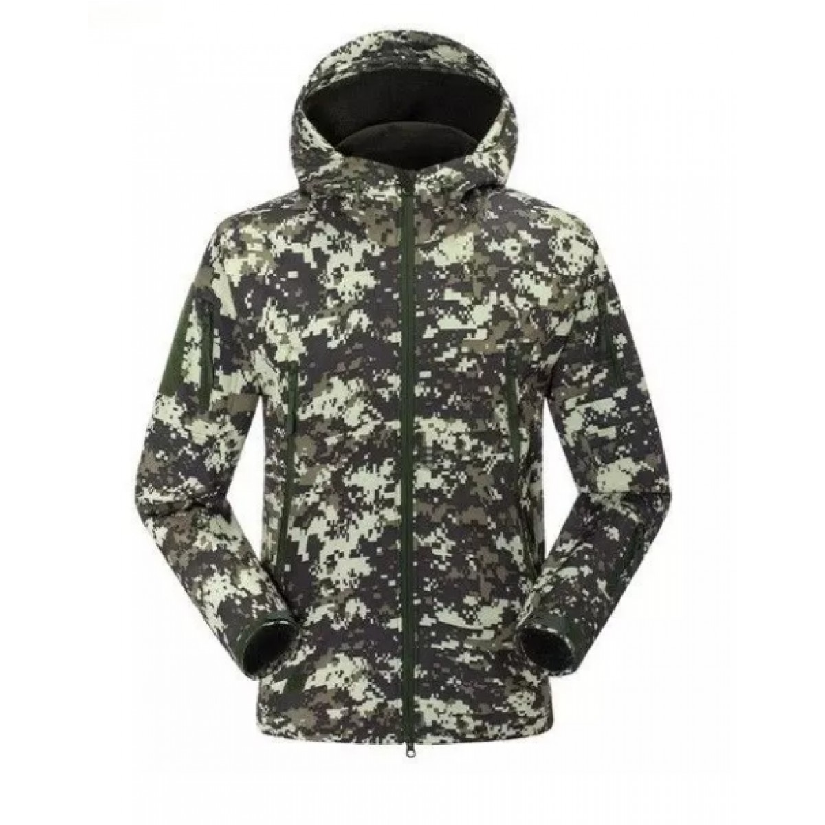 Модель з зеленим піксельним забарвленням допоможе розчинитись навіть у рідкому лісі, що оцінять мисливці та військові. Кишені з втопленими (щоб не чіплятись) блискавками розміщені з зовнішньої та внутрішньої сторони, а також невеликі – на рукавах. Вони чудово підійдуть для зберігання ключів та інших предметів, що повинні бути під рукою.