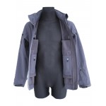 Сіра модель класичного крою вельми функціональна, за рахунок пяти зовнішніх та двох внутрішніх кишень. Є окремі відділення для документів, ключів та телефону. Передбачений захист для підборіддя, щоб не пошкодити блискавкою при різких рухах. Капюшон добре захищає від дощу, а при необхідності компактно складається у відділення в комірі.