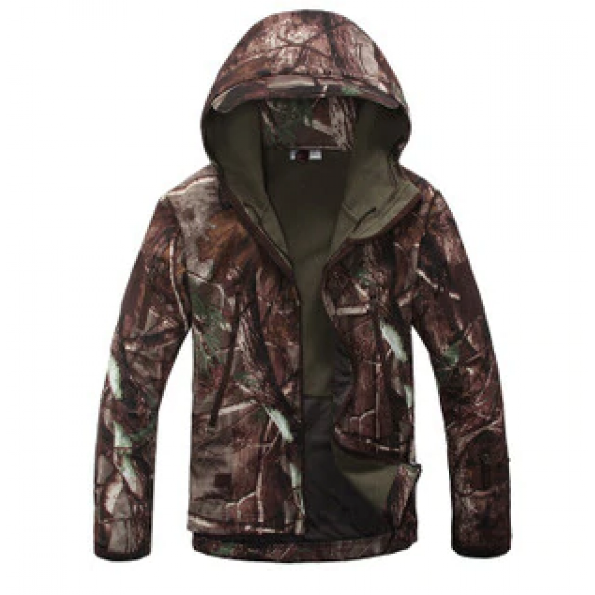 Модель с маскувальним забарвленням чудово підходить для розміщення в лісі. Вона надійно прикриває верхню частину тіла, в тому числі гордо високим коміром і затягується куліскою навколо обличчя. Кишені застібаються на блискавку, а нижня частина може регулюватись по ширині.