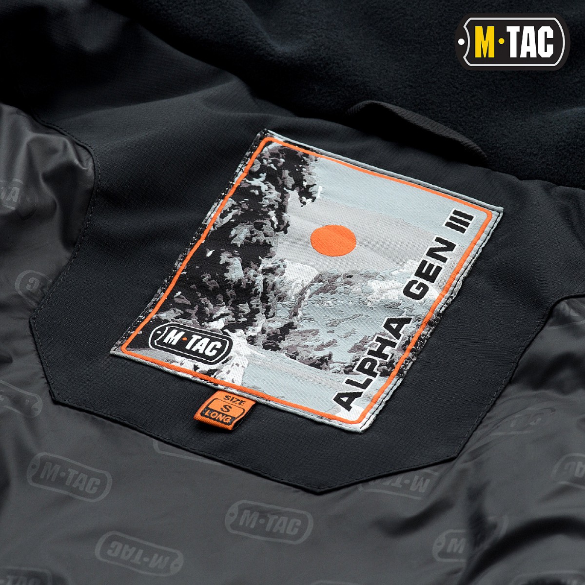 M-Tac куртка зимова Alpha Gen.III була розроблена як багатофункціональна куртка. Ефективний ізоляційний шар одночасно забезпечує відмінний захист від вітру і холоду. Дана модель була розроблена з урахуванням досягнень провідних виробників, а так само досвіду і побажань працівників МВС і ЗСУ. Alpha орієнтована на помірні фізичні навантаження, наприклад тривалий патрулювання, на які припадає більша частина часу. Регульований комір з утепленою капюшоном, флісові манжети і вітро / вологозахисні блискавки допоможуть зберегти тепло і відчуття комфорту в зимових умовах. Незважаючи на це, завдяки сучасним матеріалам і прогресивної конструкції, куртка абсолютно не сковує рухів, а так само дозволяє раціонально розміщувати носяться предмети і обладнання в зручно розташованих кишенях. Під рукавами розташовані два клапана забезпечують доступ до спорядження під курткою, які так само можна використовувати для вентиляції.