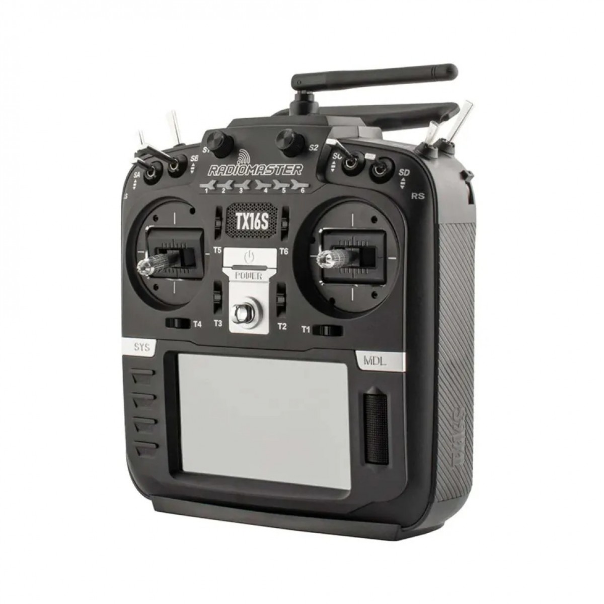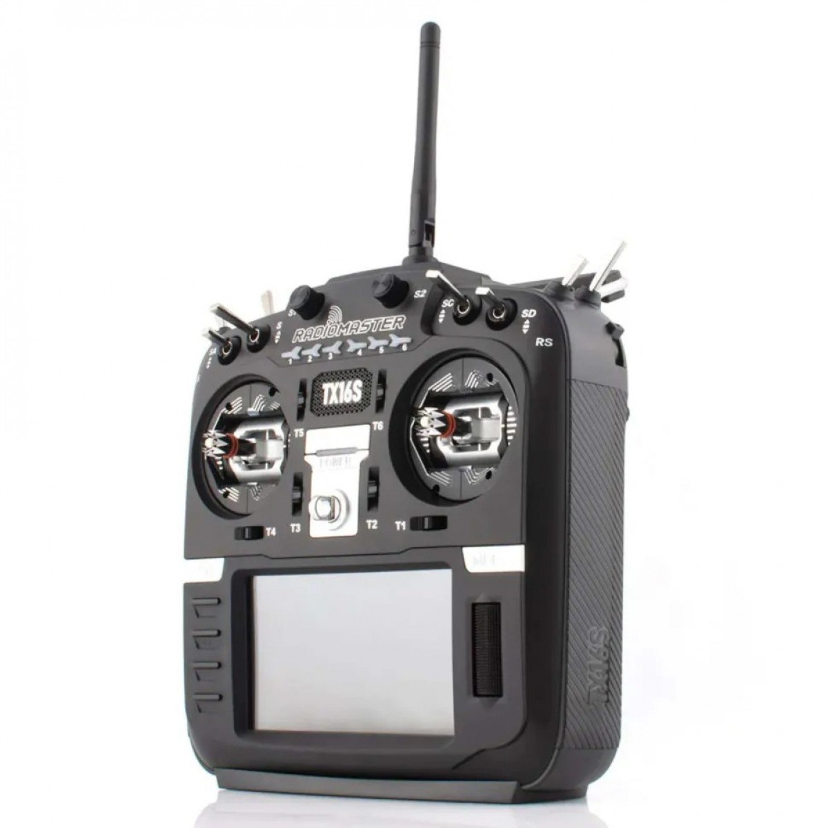 RadioMaster TX16S Mark II – апаратура керування дронами професійного класу. Модель відрізняють високоточні джойстики на датчиках Холла 4-ї версії, збільшений кольоровий дисплей із сенсорним керуванням, 2 порти UART для підключення додаткових функцій, підтримка підключення зовнішніх далекобійних модулів JR, Crossfire, FrSKY. Пристрій підтримує прошивку Open TX і може працювати від двох АКБ Li-Ion 18650 або Li-Po 2S із зарядкою USB-C.