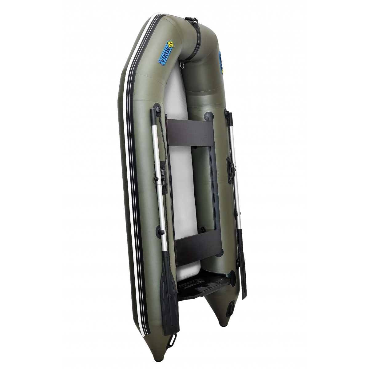 Моторний човен класичного типу. Надувний підлога ( AIR DECK). Страхувальний клапан, посилене кріплення транцем, посилені накладки низу човни, рим-ручка і якірний ролик на носі човна, леєр по периметру човна.Основні характеристики Човен Омега 260M AD (Lux)