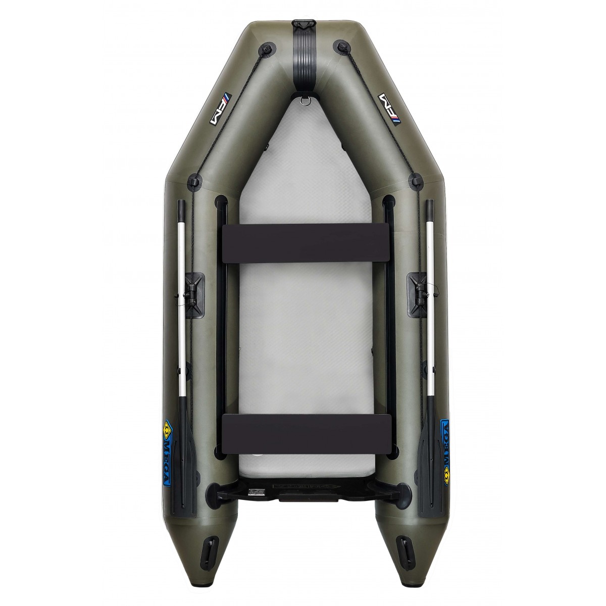 Моторний човен класичного типу. Надувний підлога ( AIR DECK). Страхувальний клапан, посилене кріплення транцем, посилені накладки низу човни, рим-ручка і якірний ролик на носі човна, леєр по периметру човна.Основні характеристики Човен Омега 300M AD(Lux)