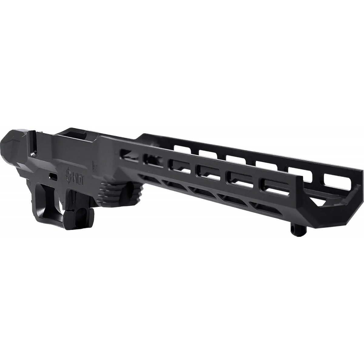 - Слотів M-LOK для встановлення різних збройових аксесуарів знизу від ствола в п’яти площинах на 3, 4, 6, 8 і 9 годин.