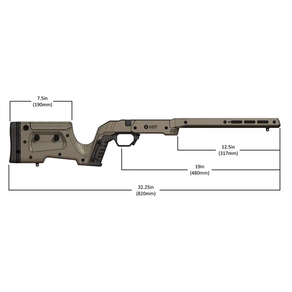 Ложе MDT XRS призначене для стрільців, які хочуть, аби ложа традиційної форми поєднувалось з перевагами сучасної високоточної гвинтівкової системи.