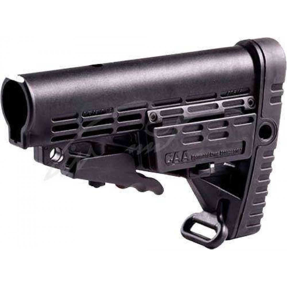 CAA Collapsible Butt Stock – тактичний приклад, що встановлюється на «комерційну» трубку (ідеально підходить для фірмових продуктів від САА). Відрізняється наявністю відсіку для запасних батарейок CR123. Можливо подальше вдосконалення під індивідуальні потреби стрілка, шляхом установки фірмових «щік», у разі надто високої розташування прицільних пристосувань. Оснащений гумовим нековзним потиличником і антабкой під рушничний ремінь.Матеріал – ударостійкий пластик..