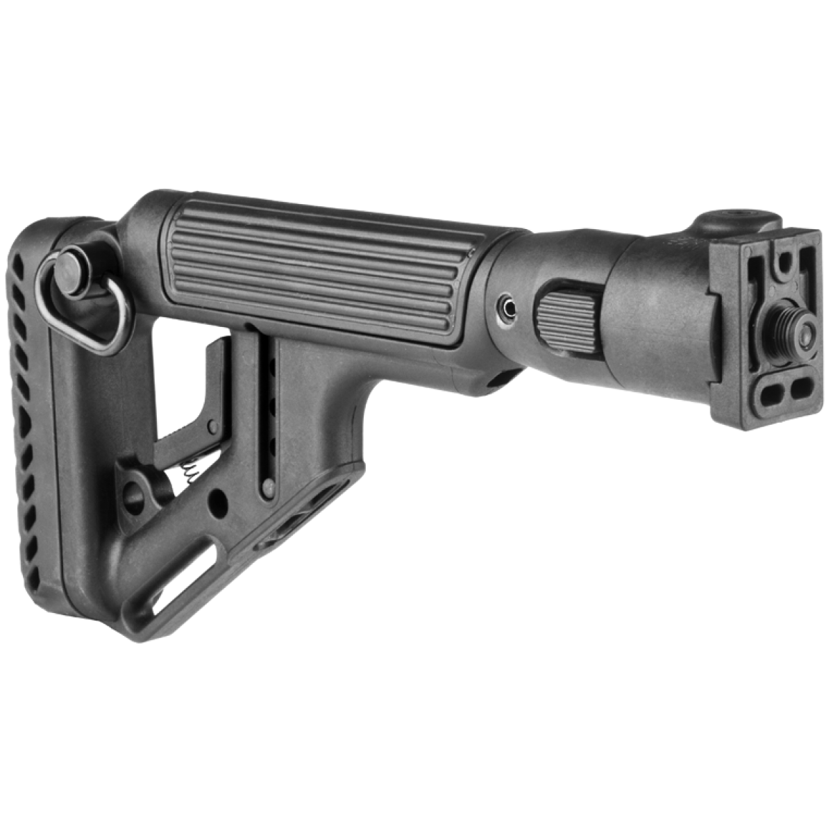 Приклад складається убік, натисканням кнопки. За замовчуванням складається вліво, але петлю можна розвернути, і змінити напрямок на правий. Для розкриття приклада досить просто потягнути приклад на себе, що дає змогу привести зброю в бойове положення інтуїтивно і швидко.