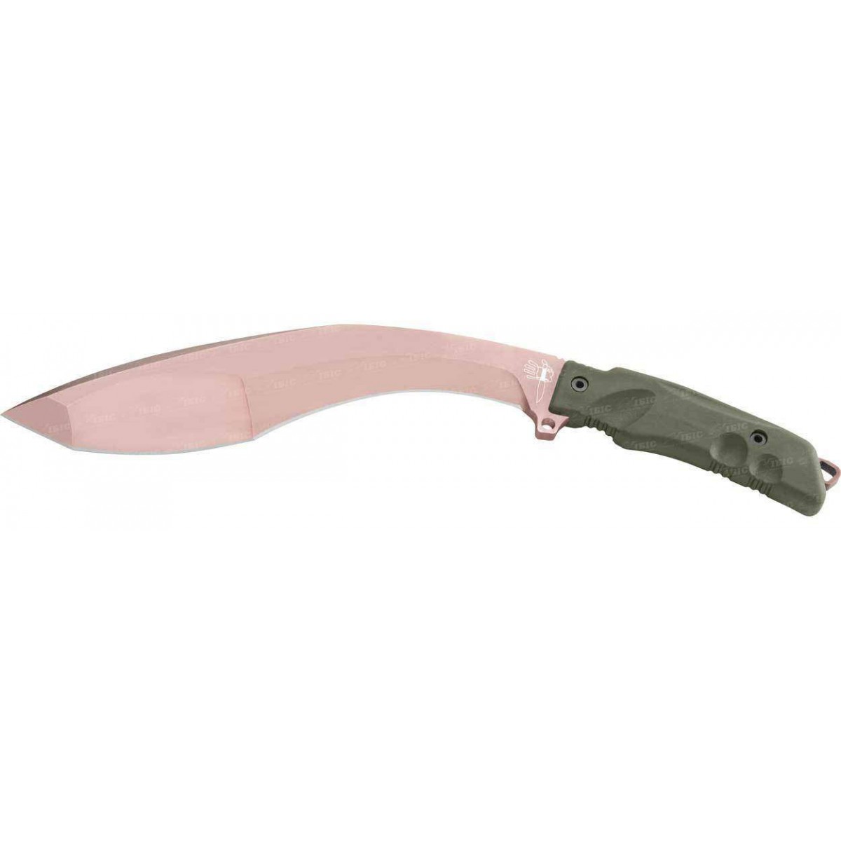 Непальська мачете – кукрі, має давню традицію і неодноразово відмінно виявляв себе в бойових діях. Компанія Fox «осучаснила» його, взявши за основу форму і вигин клинка класичного кукрі, але при цьому використовувала сучасні матеріали. Важкий потужний клинок виготовлений із сталі N690Co і має товщину 15 мм посередині і 6 мм у ріжучої кромки. А спеціальне покриття HNCF (Hard Nano Ceramic Finish) збільшує твердість клинка 70-72 HRC. Велика зручна рукоятка з подпальцевыми виїмками зроблена з эластполимера Forprene®, який не «боїться» температур від -40°С до +150°С, а також стійкий до сольовий і кислотної корозії. Піхви виготовлені з балістичного нейлону, додатково мають відділення, за розміром підходить для пістолетного магазину. Можуть бути встановлені на стегно (кріплення для пояса і еластичний ремінь на ногу), або ж на будь-який об'єкт системи MOLLE.