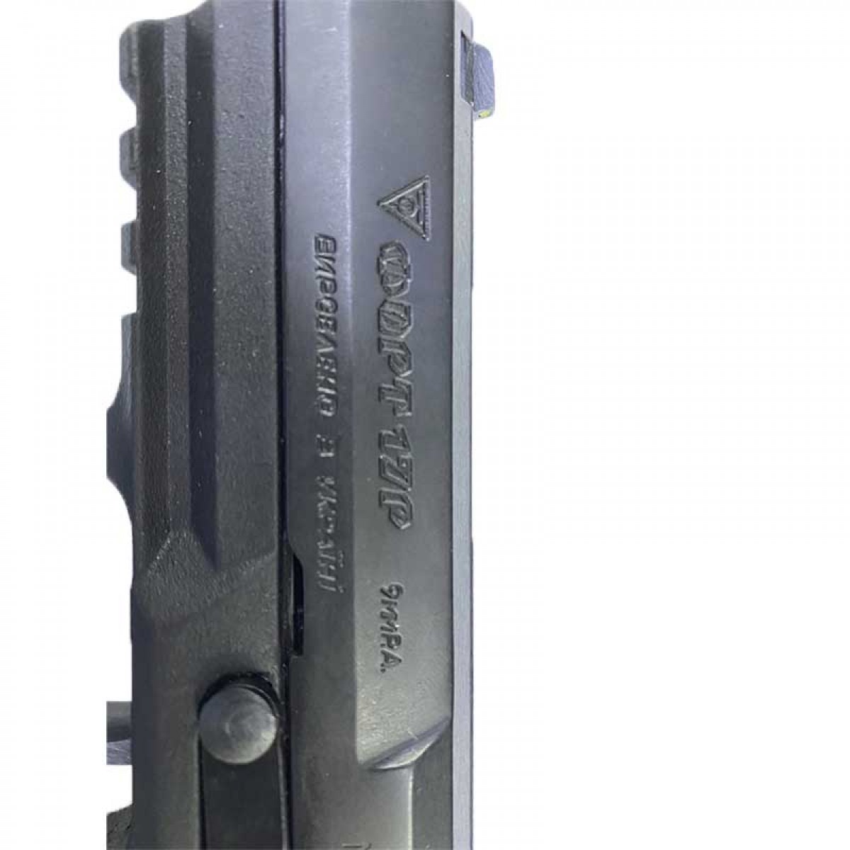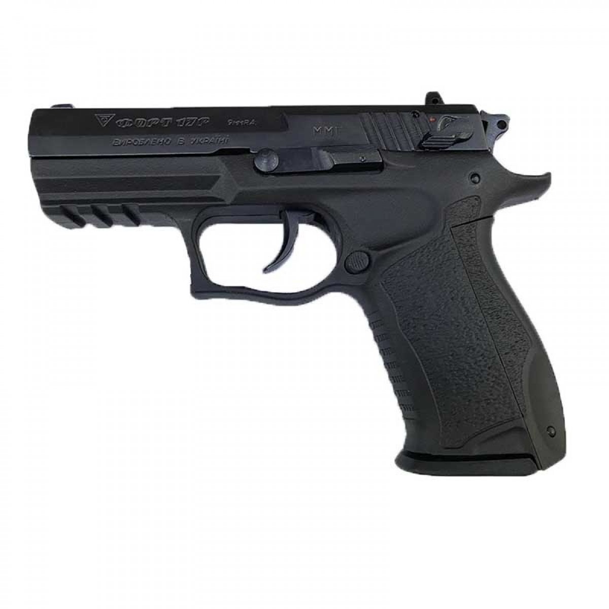 «Форт-17Р» - травматичне спецпристрої калібру 9 мм Н. А, призначене для самооборони цивільного населення. Використання полімерів, армованих сталлю, дозволило значно скоротити вагу пістолета, що робить його зручним для постійного носіння, а набір змінних накладок дозволяє точно підігнати розміри рукоятки під індивідуальні особливості руки власника.Ударно-спусковий механізм подвійної дії (SA/DA), куркового типу. Робота пістолета заснована на принципі вільного затвора з надійною системою запобіжників і можливістю блокування як курка на бойовому, так і на запобіжному взводі.