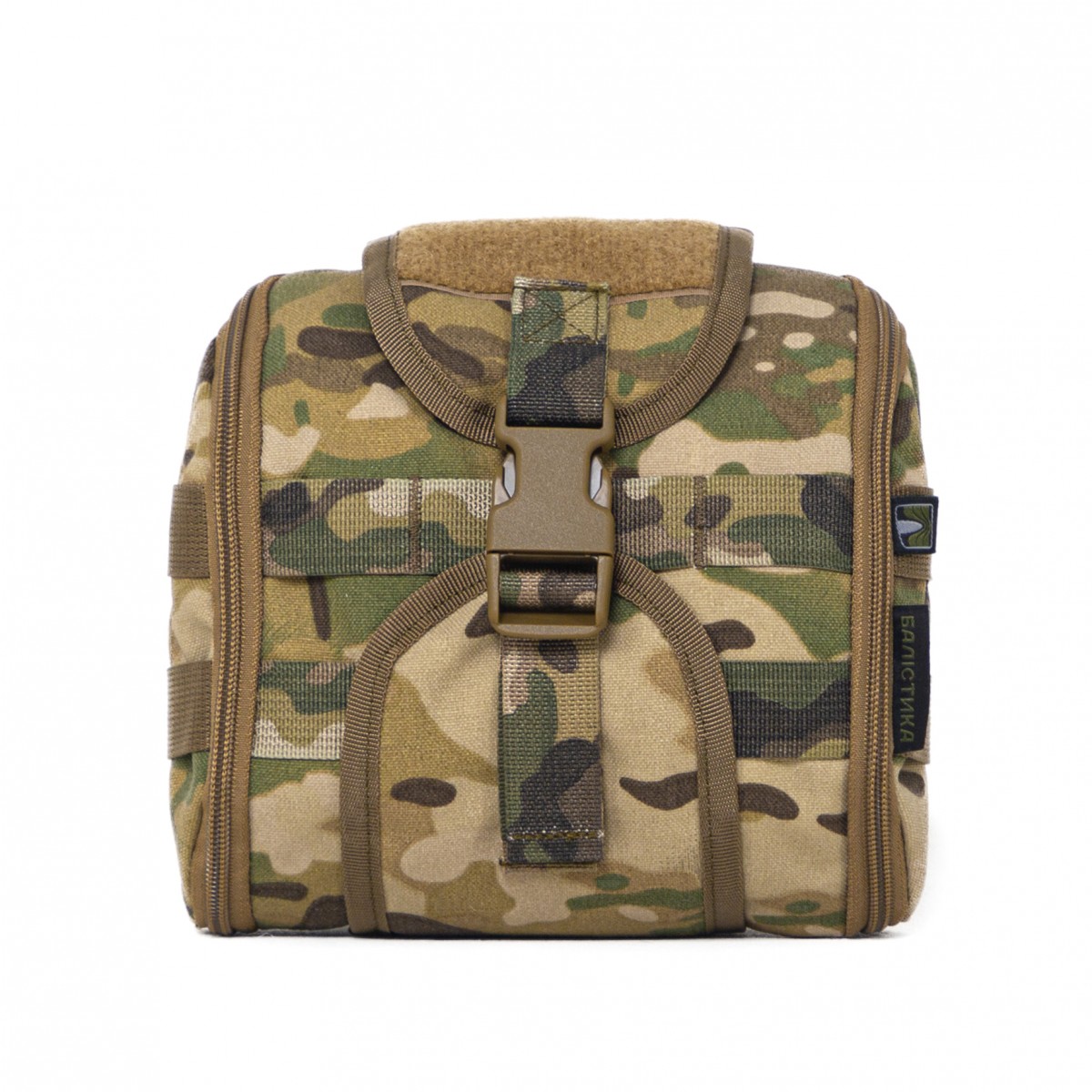 ПА1 XL – це сучасний медичний підсумок збільшеного розміру, призначений для розміщення необхідного індивідуального комплекту медицини за сучасними стандартами країн блоку НАТО. «Балістика» подбала про те, щоб підсумок був не лише містким, але й зручним. Завдяки продуманій організації внутрішнього простору кожен медичний засіб займає своє місце, що дає змогу швидко знайти його та застосувати за призначенням. Особливості підсумка Порівняно зі стандартним ПА1 підсумок під аптечку ПА1 XL має збільшену місткість. Проте решта його функціоналу залишилась незмінною: Міцна зносостійка тканина, надійні шви, посилені оздоблювальною стрічкою, забезпечують витривалість підсумка, захищають від несприятливих погодних умов та частих механічних пошкоджень. Завдяки широкому розкриванню майже весь вміст аптечки одразу потрапляє під руку, що, безумовно, дуже важливо під час надання першої невідкладної допомоги. Фіксаційна платформа, у якій підсумок кріпиться на липучку велкро та застібається на фастекс, пришнуровується до системи MOLLE. Таким чином, виріб можна зняти кількома простими рухами, покласти перед собою або передати комусь іншому. Аптечку можна носити як на платформі швидкого доступу, так і без неї, якщо у цьому є потреба. Внутрішній простір підсумка розроблений у вигляді органайзера, який дозволяє впорядковано розташувати лікарські засоби завдяки еластичним чарункам, круглим резинкам та внутрішнім кишеням. На передній частині та збоку аптечки розташовані чарунки MOLLE, що дає змогу розмістити зовні додаткові підсумки або закріпити ножиці. Цей підсумок продається порожнім, медикаменти до комплекту не входять. Технічні характеристики Розмір у складеному стані: 20×16×7 см. Вага: 280 г. Матеріал зовнішньої тканини: нейлон (Cordura 1000D). Матеріал внутрішніх кишень: поліестер Oxford. Стропа: нейлон. Липучка: Velcro (Alfatex).Основні характеристики Підсумок під аптечку ПА1 ХL (Мультикам неоригінальний)