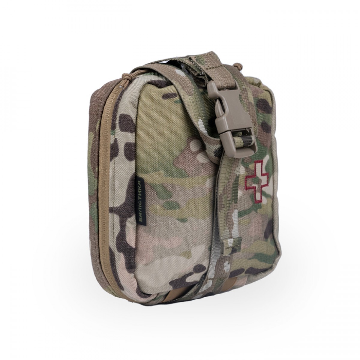 Підсумок розрахований під стандартний набір медикаментів, аналогічний натовським аптечкам IFAK, що відповідають протоколам надання допомоги на полі бою M.A.R.C.H./TCCC. ПА2 місткий та зручно організований, що дозволяє швидко дістати всі необхідні засоби для домедичної допомоги на полі бою. ✅ Ключові переваги Вміщує повноцінний набір IFAK за протоколом TCCC (формат MARCH) Жорстка платформа на моллі + підсумок на велкро Додаткова фіксація підсумка стропою з фастексом Підсумок можна швидко від’єднати від платформи для автономного використання Блискавка зі швидкісними розкривачами Кишені та еластичні фіксатори для закріплення медикаментів у зручному порядку Зовнішні кріплення для турнікета, ножиць, картки постраждалого Можна використовувати безпосередньо на спорядженні або окремо Опис товару Розмір Slim дозволяє переносити найнеобхідніші медикаменти. При цьому він займає таку саму площу на спорядженні, як і розмір Regular, але тонший за профілем. Підсумок можна розстібнути та отримати доступ до вмісту безпосередньо на спорядженні або від’єднати його і використовувати окремо. ПА2 кріпиться до фіксаційної платформи на липучку велкро та додатково закріплюється стропою з фастексом. Платформа шнурується до плитоноски або РПС за допомогою системи MOLLE. Платформа займає 3 чарунки в ширину, але з об’ємом підсумка варто розраховувати на 4 зайняті чарунки на вашому спорядженні. У платформі прихована додаткова кишеня (10,5×16 см) під атравматичні ножиці і картку постраждалого формату А6. Підсумок обладнаний блискавкою з двома бігунками та швидкісними розкривачами. Вони дозволяють за частки секунди розкрити його навпіл та отримати доступ до всього вмісту одночасно. На кожній половині є окрема кишеня (16×15 см) під об’ємні плоскі медичні засоби на зразок оклюзійної наліпки. Зовні на цих кишенях вміщені еластичні фіксатори, зокрема під турнікет, бандаж, гемостатичний та звичайний бинти для тампонади, перев’язувальні пакети, маркери, декомпресійну голку, рукавички. У нижній частині є прозора кишенька (12×7 см) з 2D-сітки на блискавці, призначена для дрібничок на зразок пілпака, накладки на око та серветок. Посередині підсумка (між його половинками) вміщений еластичний фіксатор під пластир або скотч. Знизу виробу зовні пришитий ще один фіксатор, який дозволяє переносити додатковий турнікет. Підсумок оснащений ручкою зі стропи для зручнішого перенесення. ℹ️ Медикаменти до комплекту не входять. Користуйтесь тільки рекомендованими протоколом ТССС засобами та медикаментами – вони рятують життя! ❓ Часті запитання Чим ПА2 Slim відрізняється від ПА2 Regular? Моделі відрізняються лише товщиною. Slim завтовшки 6 см, а Regular – 8 см. Водночас обидва підсумки мають однакову площу кріплення (17×17 см). Чи входять до комплекту медичні засоби? Ні, підсумок продається порожнім. Ми рекомендуємо формувати його наповнення відповідно до протоколу TCCC/MARCH. Чи можна відкривати підсумок однією рукою? Так, завдяки швидкісним розкривачам на блискавці підсумок легко відкрити навіть у стресових умовах. Чи підходить ПА2 для цивільного використання? Так, аптечка зручна для автомобіля, стрільбищ, походів або підготовки до надзвичайних ситуацій.Основні характеристики Підсумок під аптечку ПА2 slim (Мультикам)