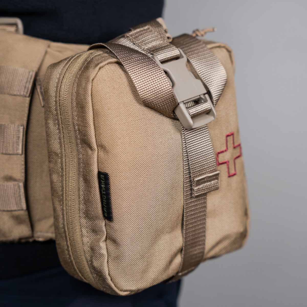 Підсумок розрахований під стандартний набір медикаментів, аналогічний натовським аптечкам IFAK, що відповідають протоколам надання допомоги на полі бою M.A.R.C.H./TCCC. ПА2 місткий та зручно організований, що дозволяє швидко дістати всі необхідні засоби для домедичної допомоги на полі бою. ✅ Ключові переваги Вміщує повноцінний набір IFAK за протоколом TCCC (формат MARCH) Жорстка платформа на моллі + підсумок на велкро Додаткова фіксація підсумка стропою з фастексом Підсумок можна швидко від’єднати від платформи для автономного використання Блискавка зі швидкісними розкривачами Кишені та еластичні фіксатори для закріплення медикаментів у зручному порядку Зовнішні кріплення для турнікета, ножиць, картки постраждалого Можна використовувати безпосередньо на спорядженні або окремо Опис товару Розмір Slim дозволяє переносити найнеобхідніші медикаменти. При цьому він займає таку саму площу на спорядженні, як і розмір Regular, але тонший за профілем. Підсумок можна розстібнути та отримати доступ до вмісту безпосередньо на спорядженні або від’єднати його і використовувати окремо. ПА2 кріпиться до фіксаційної платформи на липучку велкро та додатково закріплюється стропою з фастексом. Платформа шнурується до плитоноски або РПС за допомогою системи MOLLE. Платформа займає 3 чарунки в ширину, але з об’ємом підсумка варто розраховувати на 4 зайняті чарунки на вашому спорядженні. У платформі прихована додаткова кишеня (10,5×16 см) під атравматичні ножиці і картку постраждалого формату А6. Підсумок обладнаний блискавкою з двома бігунками та швидкісними розкривачами. Вони дозволяють за частки секунди розкрити його навпіл та отримати доступ до всього вмісту одночасно. На кожній половині є окрема кишеня (16×15 см) під об’ємні плоскі медичні засоби на зразок оклюзійної наліпки. Зовні на цих кишенях вміщені еластичні фіксатори, зокрема під турнікет, бандаж, гемостатичний та звичайний бинти для тампонади, перев’язувальні пакети, маркери, декомпресійну голку, рукавички. У нижній частині є прозора кишенька (12×7 см) з 2D-сітки на блискавці, призначена для дрібничок на зразок пілпака, накладки на око та серветок. Посередині підсумка (між його половинками) вміщений еластичний фіксатор під пластир або скотч. Знизу виробу зовні пришитий ще один фіксатор, який дозволяє переносити додатковий турнікет. Підсумок оснащений ручкою зі стропи для зручнішого перенесення. ℹ️ Медикаменти до комплекту не входять. Користуйтесь тільки рекомендованими протоколом ТССС засобами та медикаментами – вони рятують життя! ❓ Часті запитання Чим ПА2 Slim відрізняється від ПА2 Regular? Моделі відрізняються лише товщиною. Slim завтовшки 6 см, а Regular – 8 см. Водночас обидва підсумки мають однакову площу кріплення (17×17 см). Чи входять до комплекту медичні засоби? Ні, підсумок продається порожнім. Ми рекомендуємо формувати його наповнення відповідно до протоколу TCCC/MARCH. Чи можна відкривати підсумок однією рукою? Так, завдяки швидкісним розкривачам на блискавці підсумок легко відкрити навіть у стресових умовах. Чи підходить ПА2 для цивільного використання? Так, аптечка зручна для автомобіля, стрільбищ, походів або підготовки до надзвичайних ситуацій.Відгуки про Підсумок під аптечку ПА2 slim (Койот)