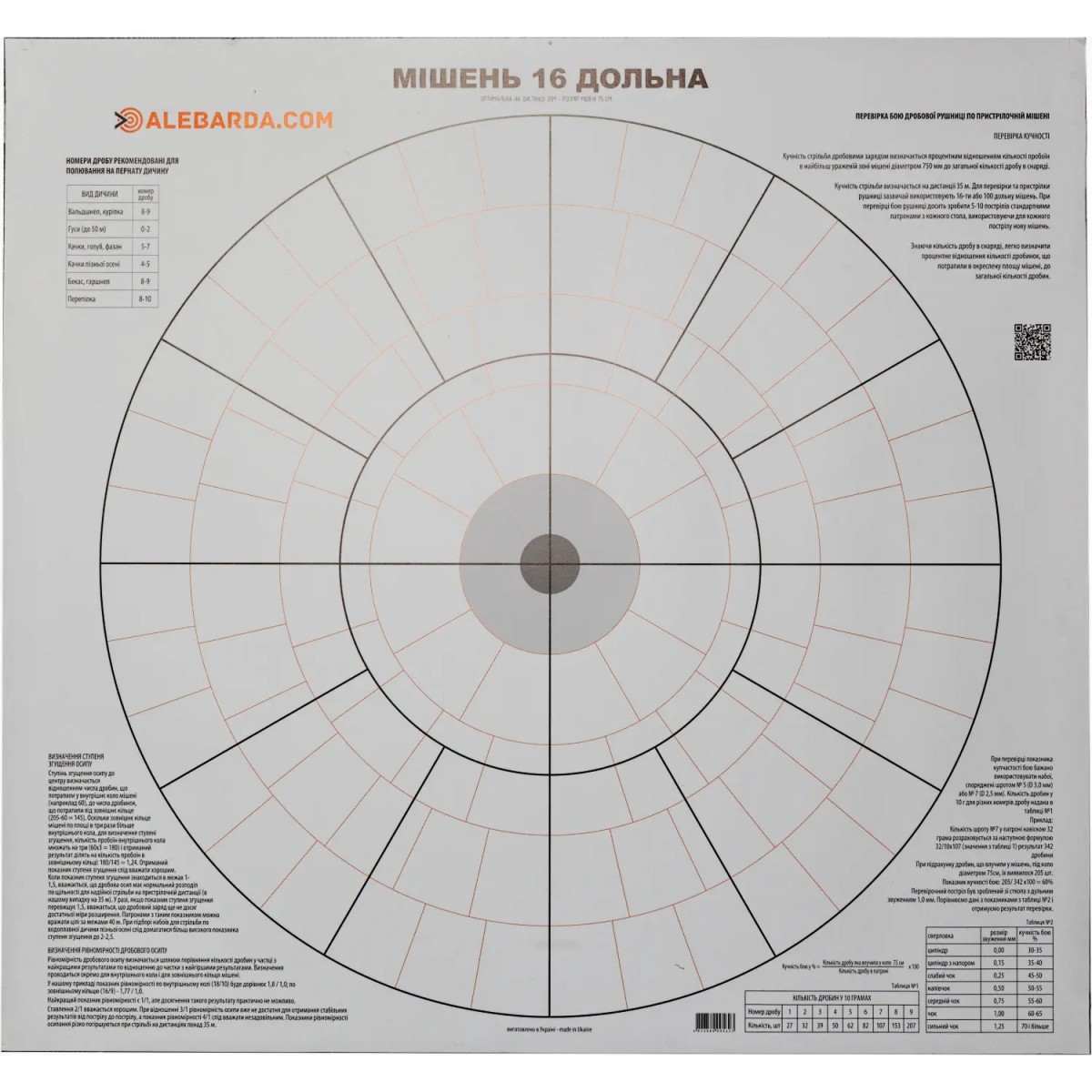 Мішень 16-ти дольная призначена для перевірки осипу дробу, а також купчастості бою дробовими патронами з гладкоствольної зброї.